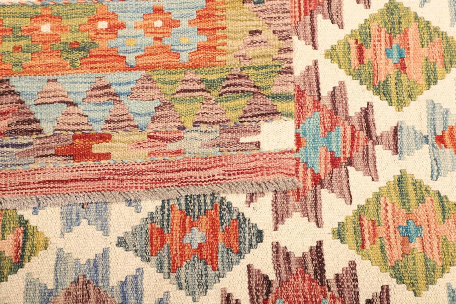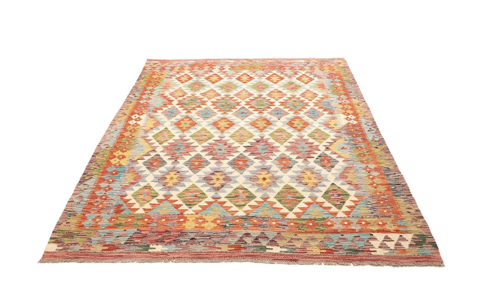 971$ In den WarenkorbKelim 215 x 144 cm – Handgewebt mit identischem Muster auf Vorder- und Rückseite – Orientteppich