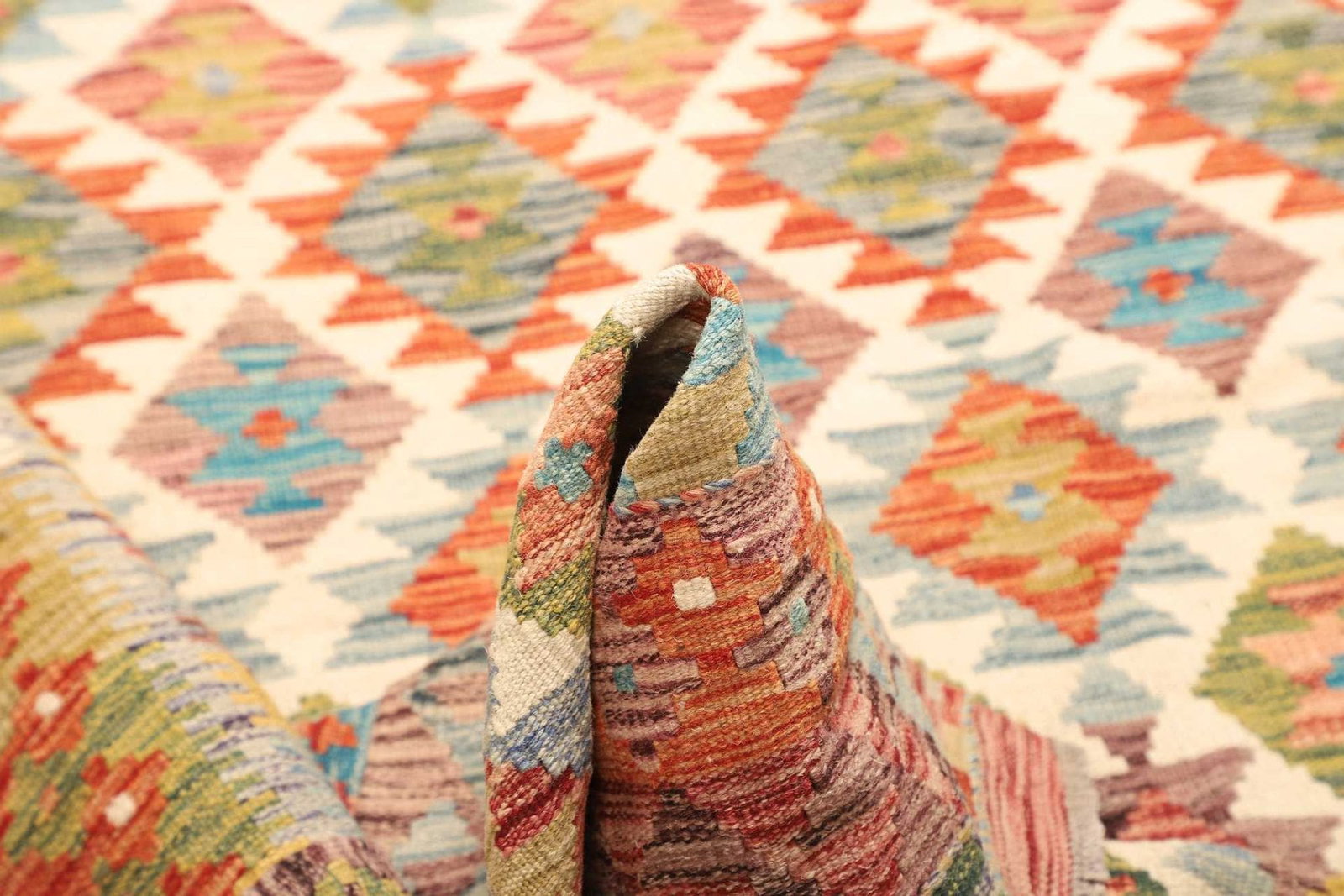 Ein herausragendes Merkmal des handgewebten Kelim Teppichs ist seine Vielseitigkeit. Er kann nicht nur als Bodenbelag verwendet werden, sondern auch als Wandbehang oder Tischläufer fungieren. Darüber hinaus sind Kelims aufgrund ihrer flachen Beschaffenheit besonders pflegeleicht und können problemlos gereinigt werden.