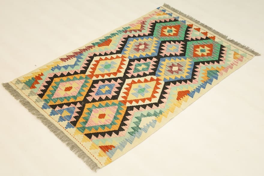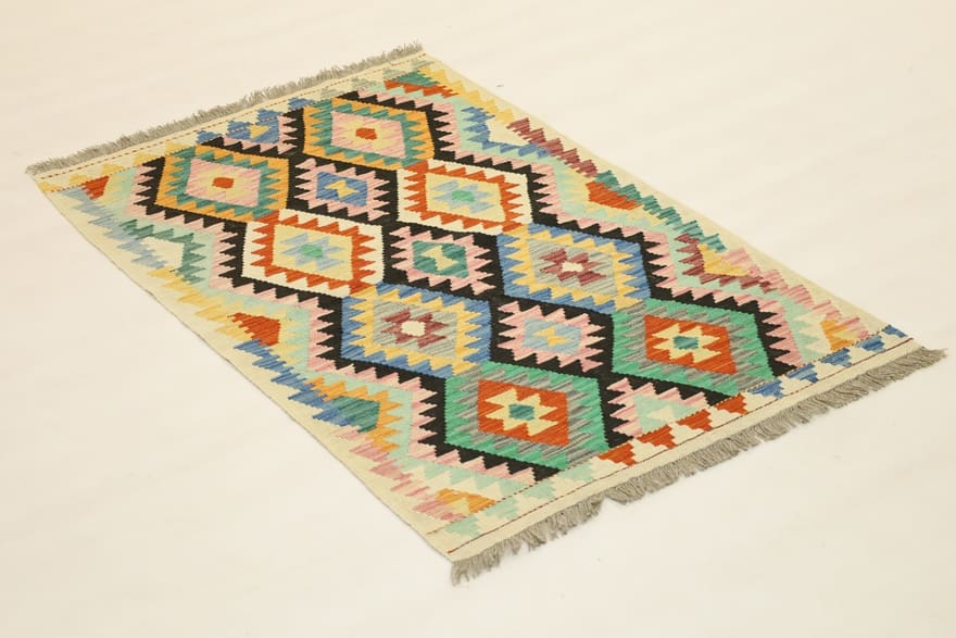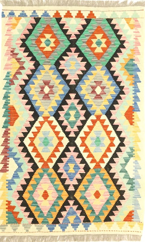 Handgewebter Kelim-Teppich | Knotendichte: Nicht geknüpft | Material: Handgesponnene Wolle | Größe: 162×101 cm | Farbe: Multifarbe | Form: Rechteckig | Zustand: Neu | Ursprung: Afghanistan | Dicke: ca. 3 mm | Gewicht: ca. 4 kg