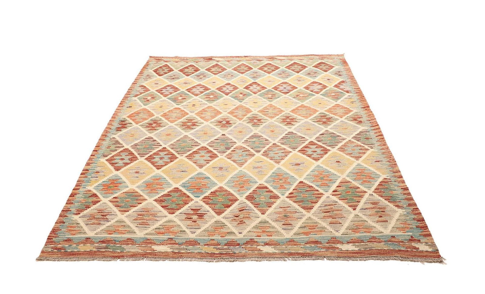 603$Ursprünglicher Preis war: 603$508$Aktueller Preis ist: 508$Kelim-Teppich | Größe: 163 x 212 cm | Herkunft: Pakistan | Knotendichte: ca. 200.000 Knoten/m² | Flor: 100% Schurwolle | Kette: 100% Baumwolle | Höhe: ca. 5 mm | Handgewebte Qualität mit rustikalem Flair