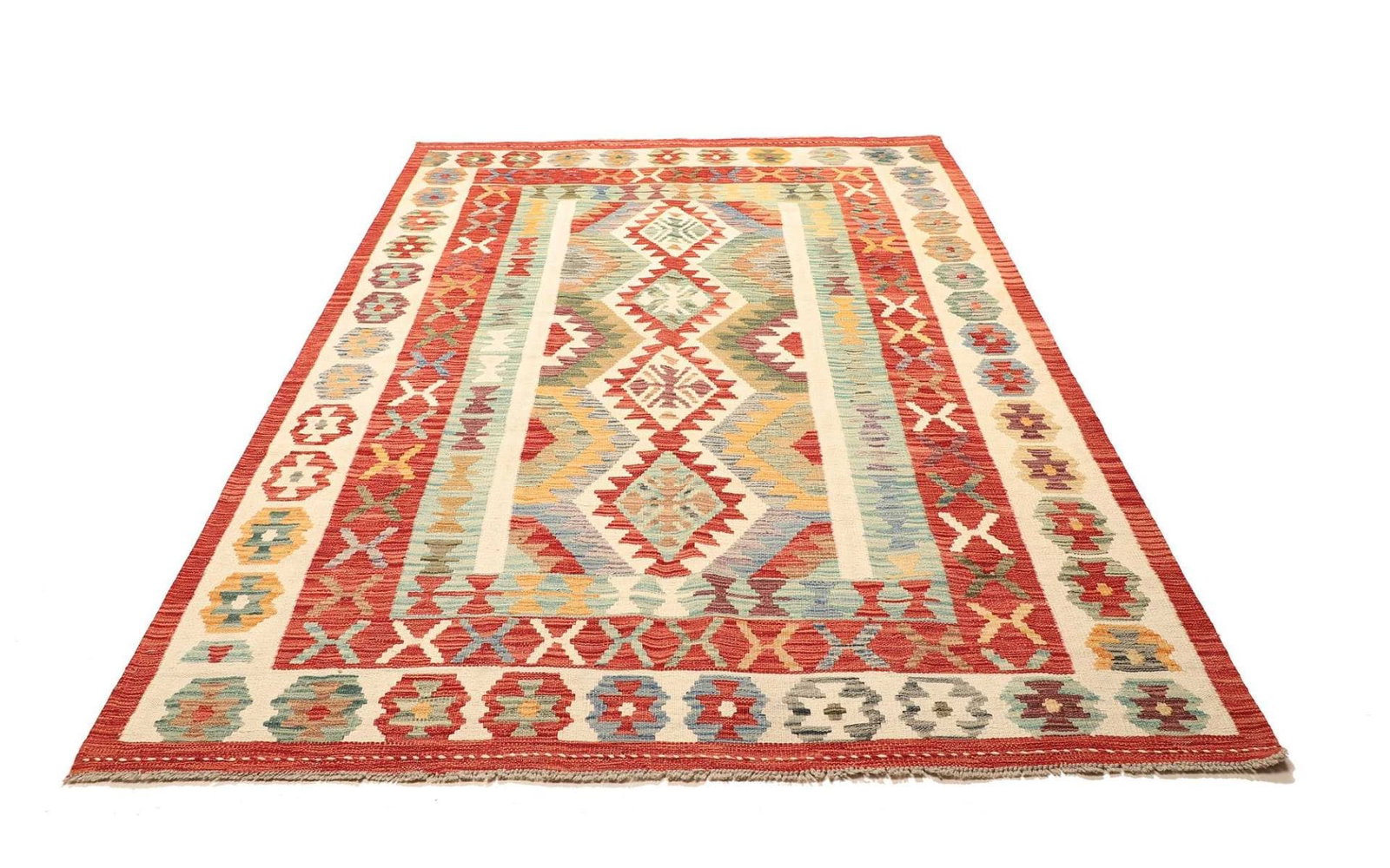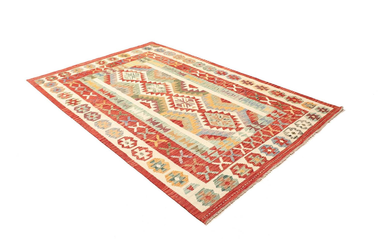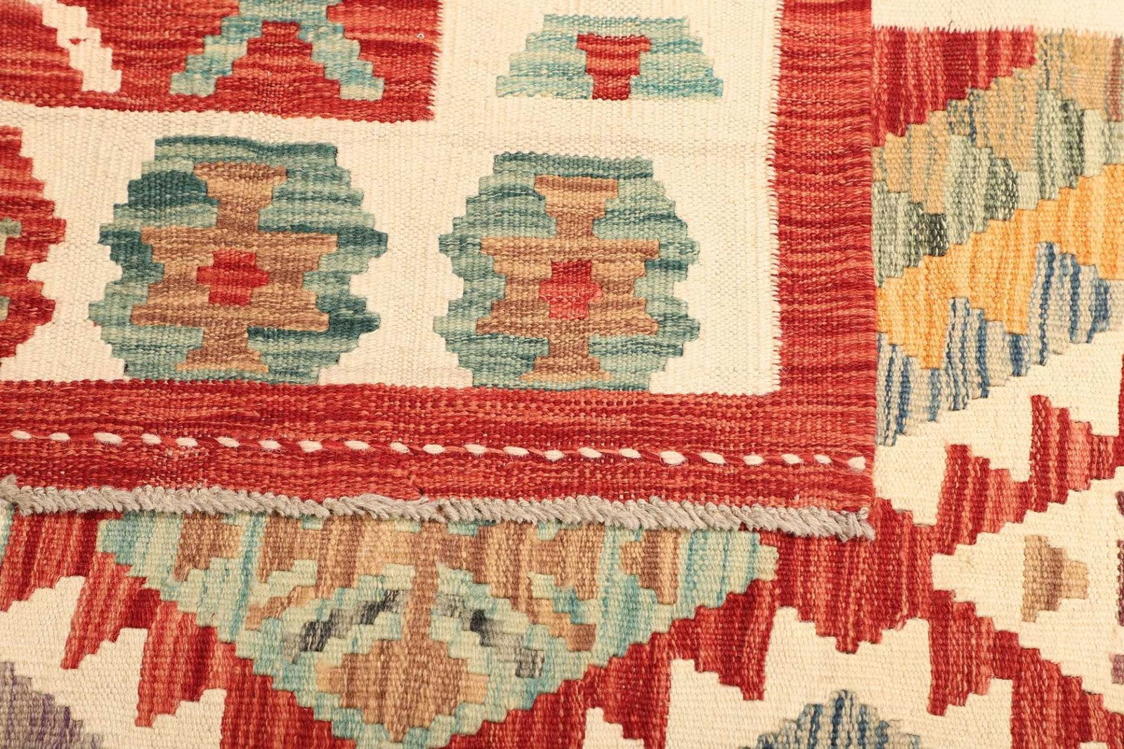 1096$Ursprünglicher Preis war: 1096$785$Aktueller Preis ist: 785$ In den WarenkorbKelim 215 x 144 cm – Handgewebt mit identischem Muster auf Vorder- und Rückseite – Orientteppich