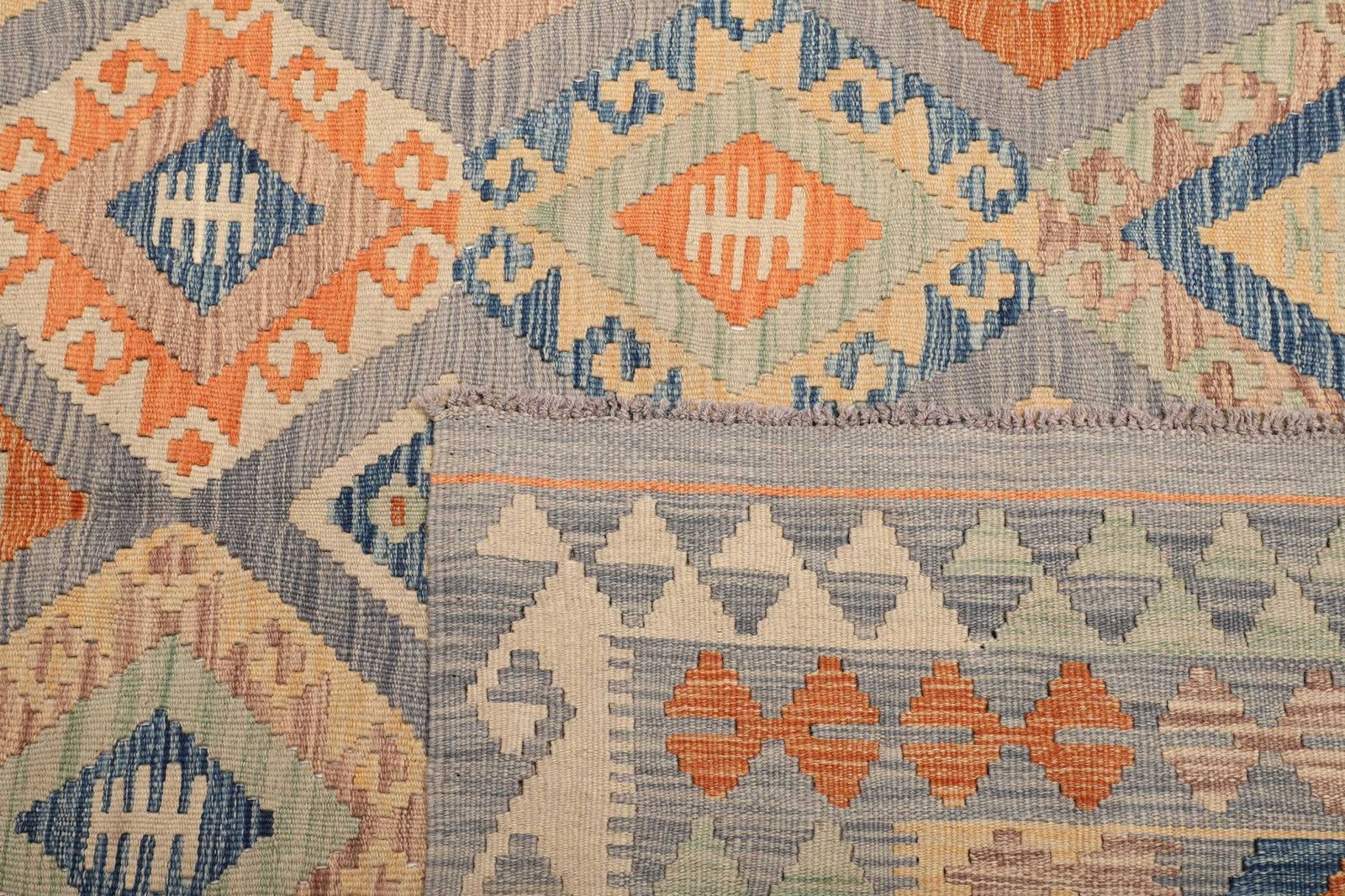 971$ In den WarenkorbKelim 205 x 150 cm – handgewebt mit doppeltem Muster, vielseitig einsetzbar als Teppich oder Wandbehang – handgewebt, Orientteppich