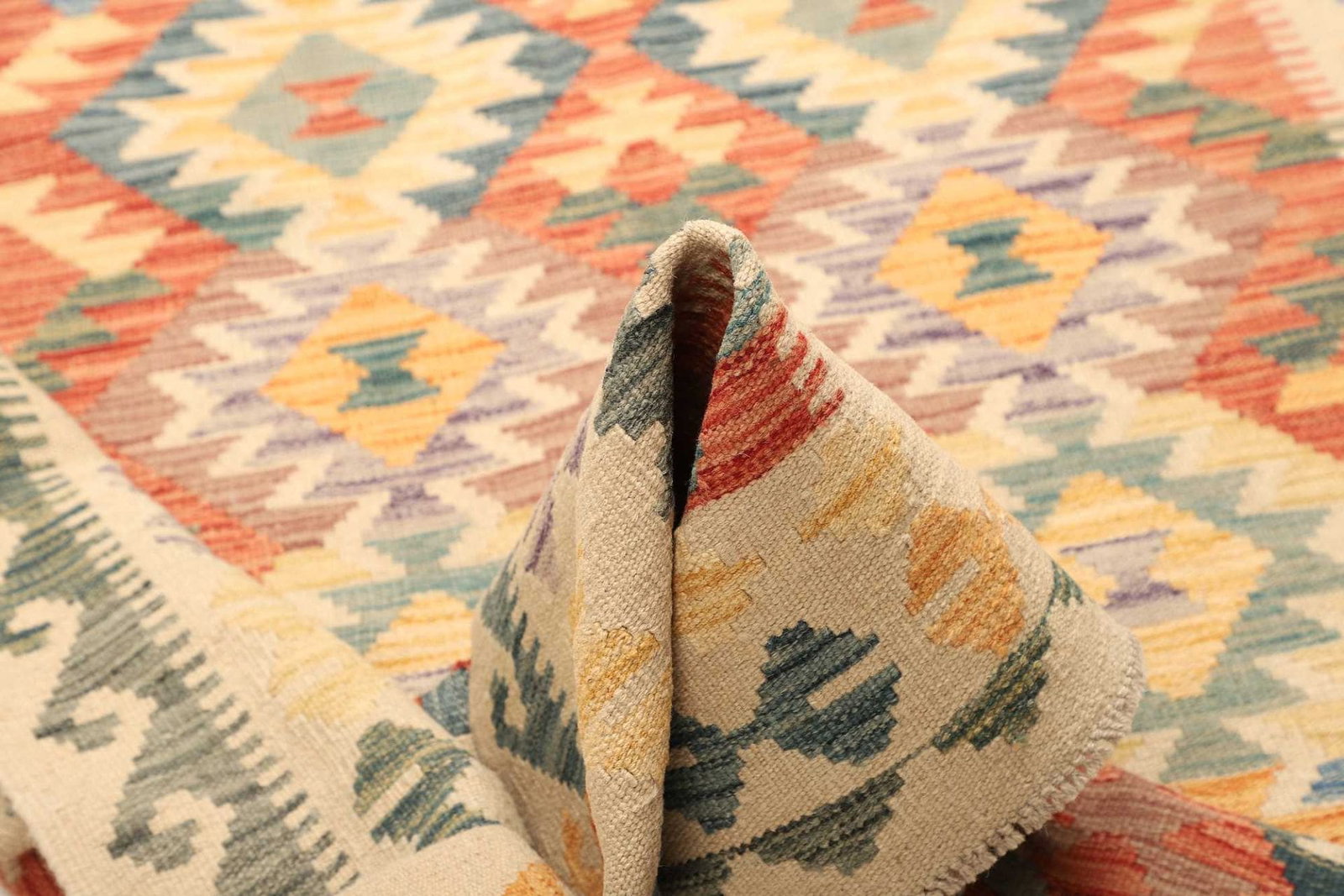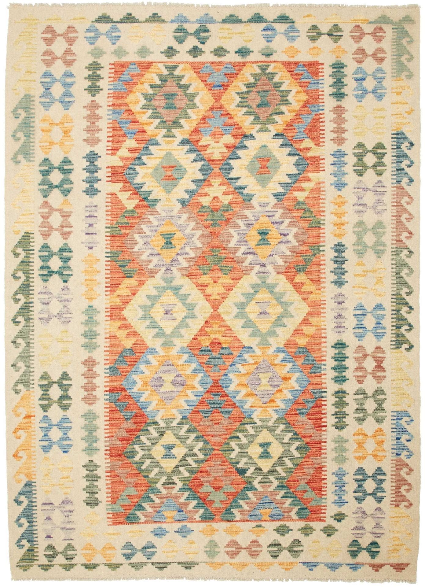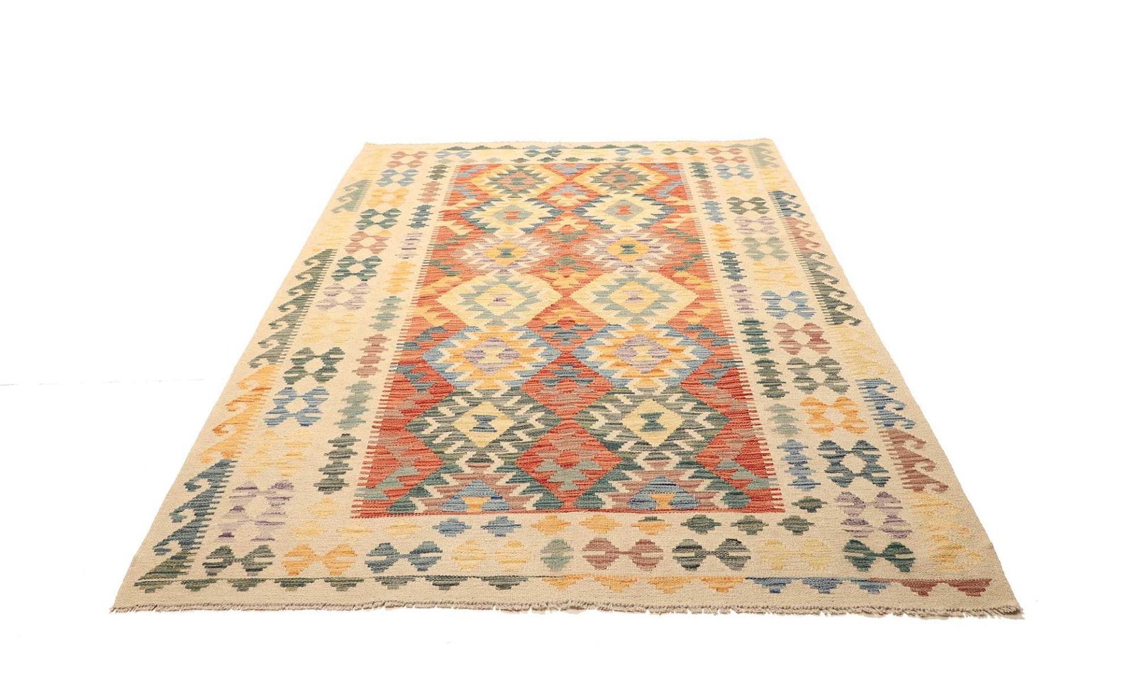 Kelim Teppich | Knotendichte: ca. 200.000 Knoten/m² | Material: 100% Schurwolle (Flor) und 100% Baumwolle (Kette) | Größe: 173 x 234 cm | Herkunft: Pakistan | Verarbeitung: Handgewebt | Zustand: Sehr gut, rustikales Flair