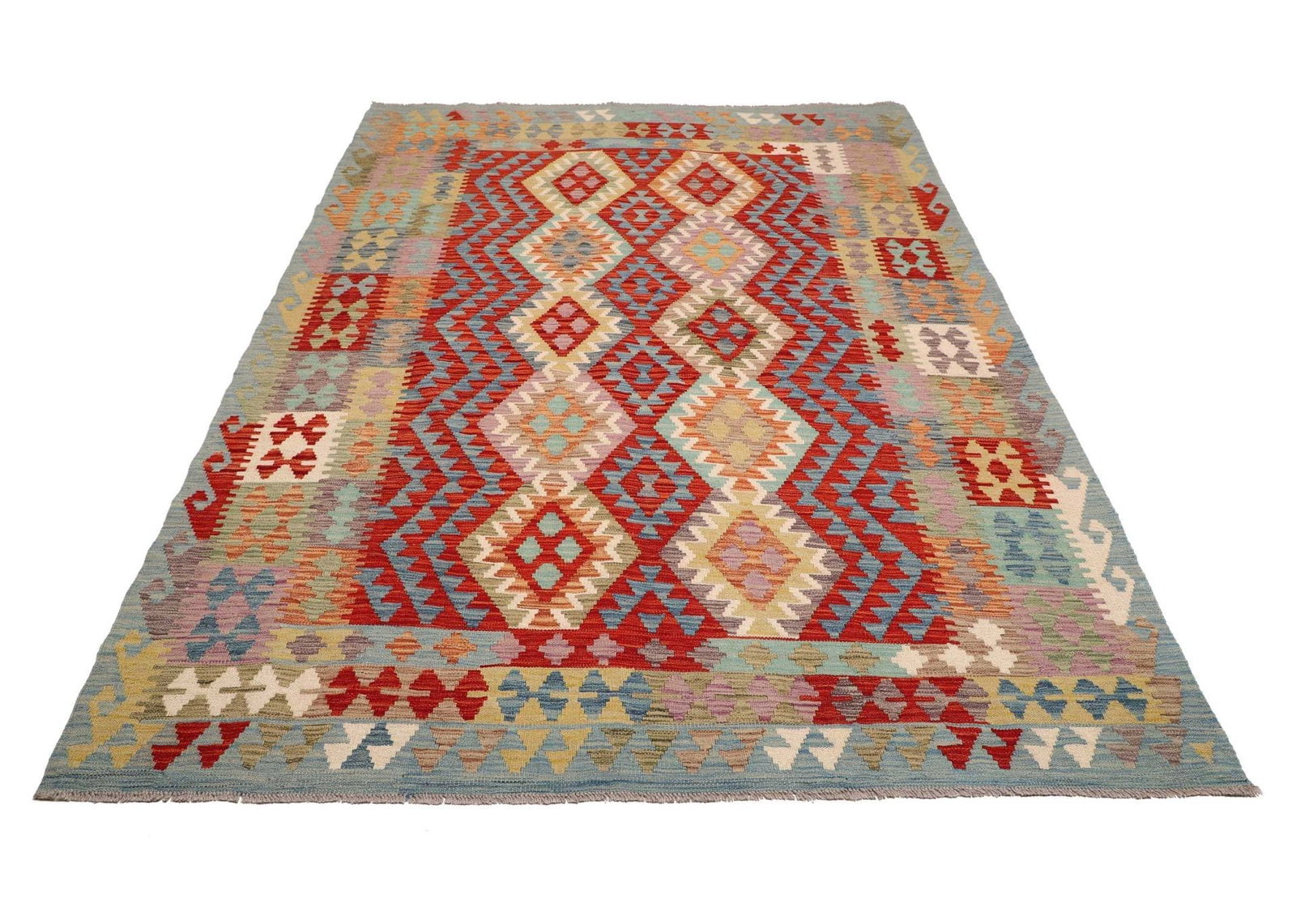 Kelim Teppich 173 x 241cm aus Schurwolle, handgewebt, rustikal