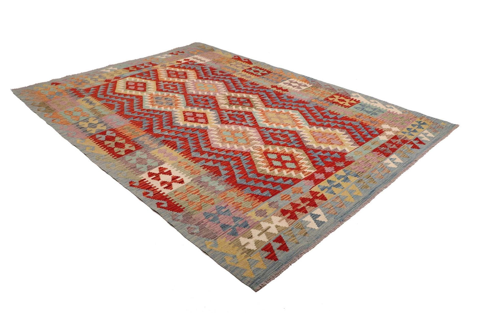 687$Ursprünglicher Preis war: 687$542$Aktueller Preis ist: 542$Kelim Teppich | Größe: 173 x 241 cm | Knotendichte: ca. 200.000 Knoten/m² | Flor: 100% Schurwolle | Kette: 100% Baumwolle | Herkunft: Pakistan | Handgewebte Qualität | Höhe: ca. 5 mm | Rustikales Flair, ideal für modernes Wohnen