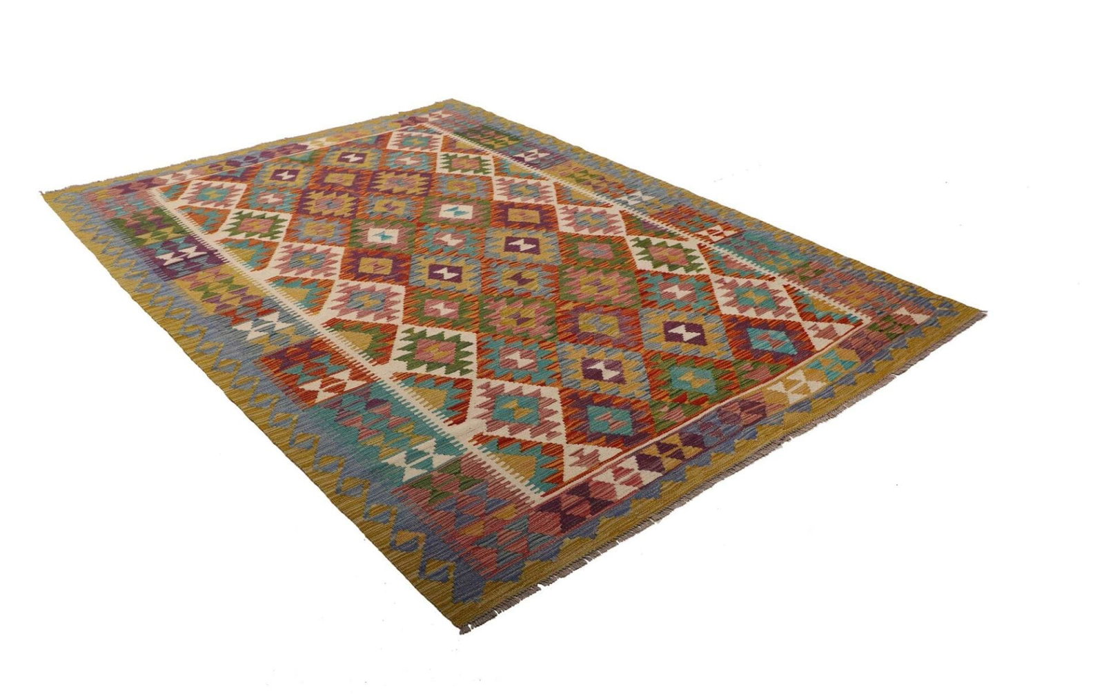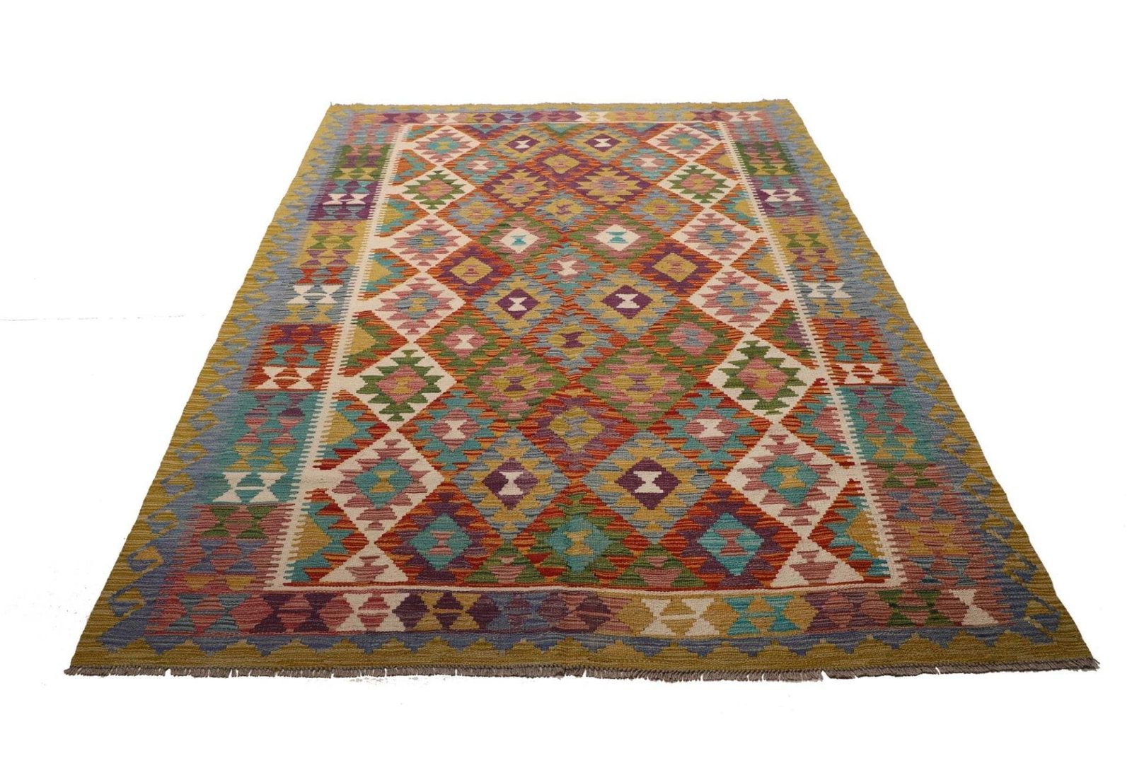 763$Ursprünglicher Preis war: 763$595$Aktueller Preis ist: 595$Kelim Teppich | Knotendichte: ca. 200.000 Knoten/m² | Material: 100% Schurwolle | Größe: 173 x 242 cm | Handgewebte Qualität | Herkunft: Pakistan | Florhöhe: ca. 5 mm | Kette: 100% Baumwolle