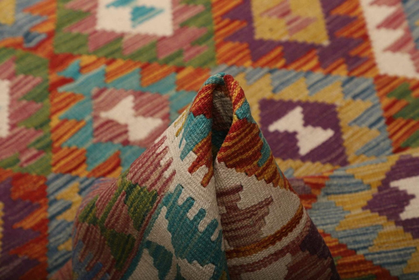 Ein weiterer Vorteil des Kelim Teppichs ist seine Vielseitigkeit. Durch die flache Struktur lässt er sich in unterschiedlichen Raumkonzepten verwenden, sei es in einem modernen Loft, einem klassischen Wohnzimmer oder einem rustikalen Landhaus. Neben der dekorativen Funktion ist der Teppich auch funktional – er ist schmutzabweisend und lässt sich leicht reinigen. Dies macht ihn zur idealen Wahl für stark frequentierte Bereiche im Haushalt.
