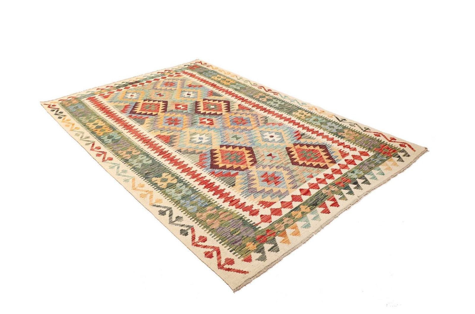 971$ In den WarenkorbKelim 206 x 145 cm – Gewebt mit identischen Mustern auf Vorder- und Rückseite, ideal als Wandbehang, handgewebt, Orientteppich