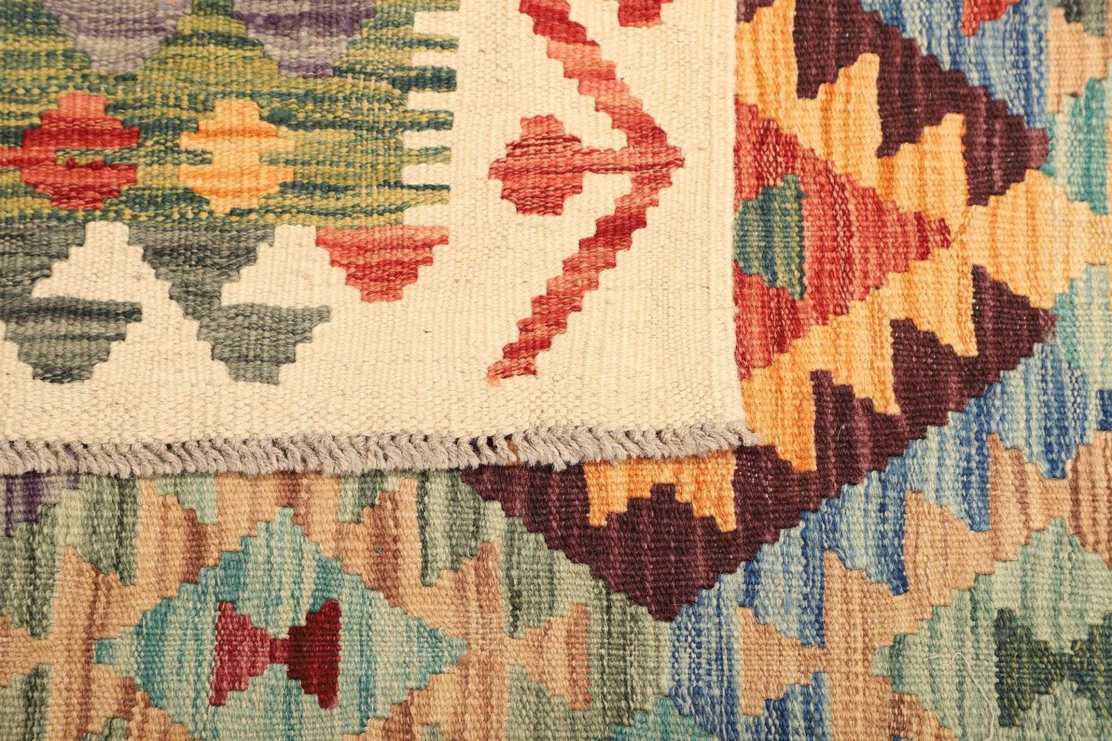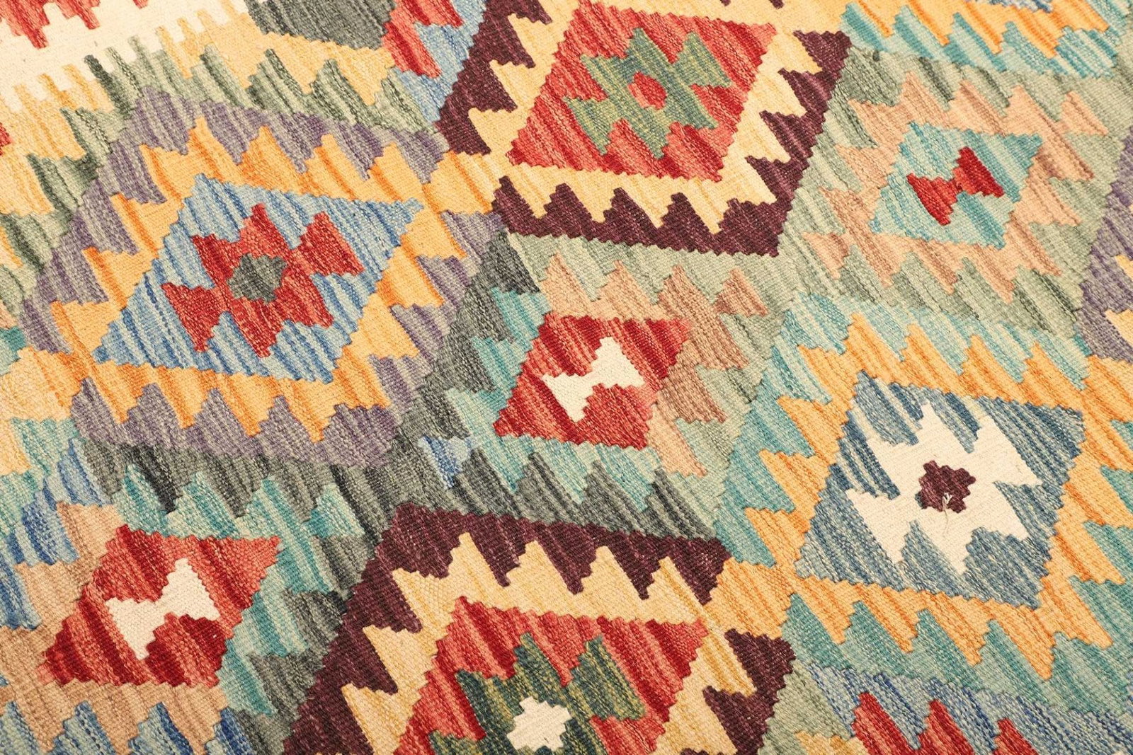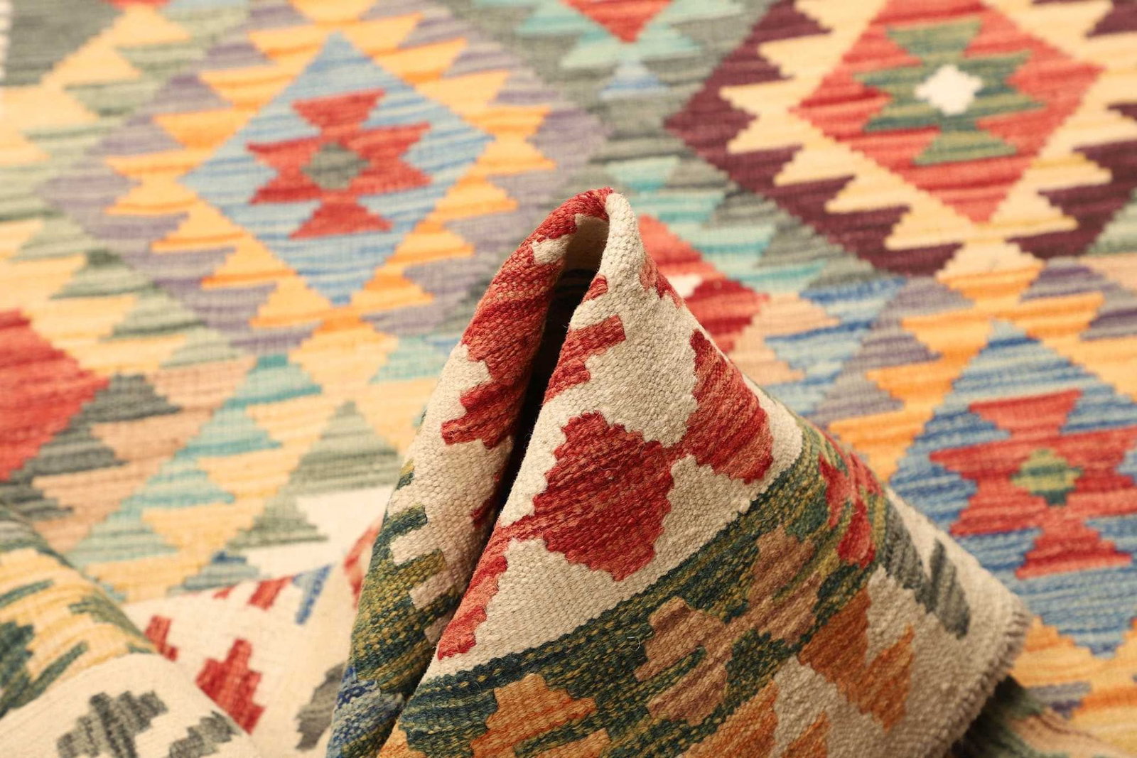 Der Kelim Teppich besteht aus 100% Schurwolle, die für ihre Strapazierfähigkeit und ihren hohen Komfort bekannt ist. Schurwolle ist ein Naturmaterial, das nicht nur angenehm weich ist, sondern auch eine hervorragende Wärmeisolierung bietet. Die handgewebte Technik sorgt dafür, dass jeder Teppich ein Unikat ist. Die Kunst des Kelim-Webens wird seit Jahrhunderten praktiziert und bringt die traditionellen Muster und Farben der Region zur Geltung. Die Knotendichte ist hoch genug, um eine robuste Struktur zu gewährleisten, ohne den Charme und die Leichtigkeit des Designs zu verlieren.