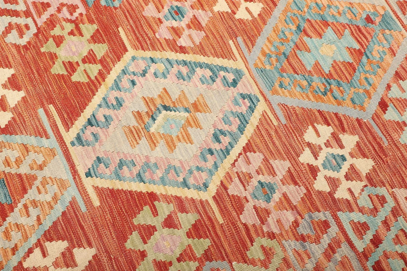 Der Kelim Teppich besticht durch sein rustikales und zugleich modernes Muster, das in jedem Raum ein wahrer Blickfang ist. Die geometrischen Formen und lebendigen Farben verleihen dem Teppich eine frische und einladende Atmosphäre. Solche Designs sind nicht nur ästhetisch ansprechend, sondern tragen auch kulturelle Bedeutungen und Geschichten, die tief in der Geschichte der Region verwurzelt sind. Jedes Muster erzählt eine eigene Geschichte und spiegelt die Traditionen und den Lebensstil der Menschen wider, die ihn gewebt haben.