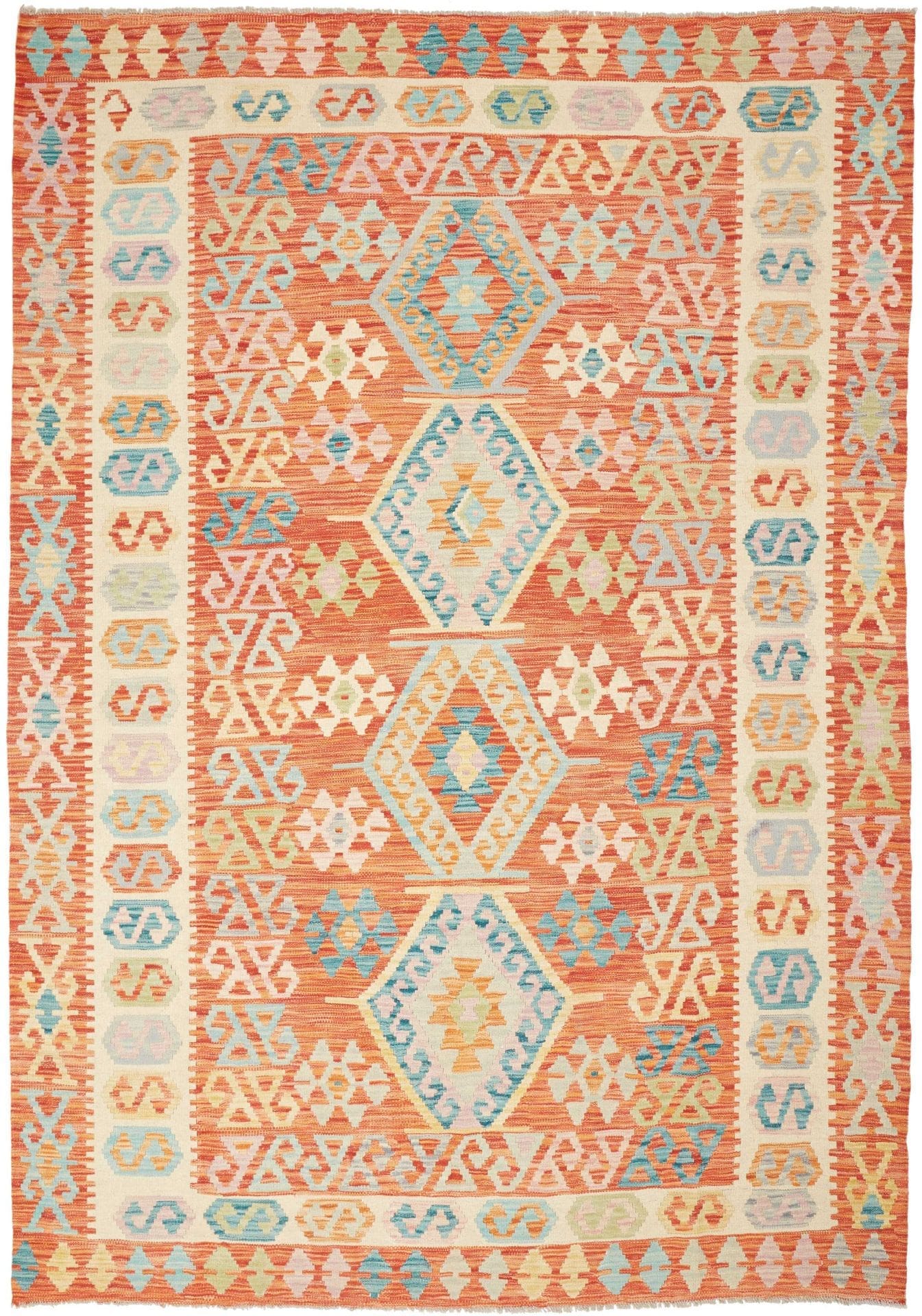 578$ In den WarenkorbKelim 206 x 145 cm – Gewebt mit identischen Mustern auf Vorder- und Rückseite, ideal als Wandbehang, handgewebt, Orientteppich