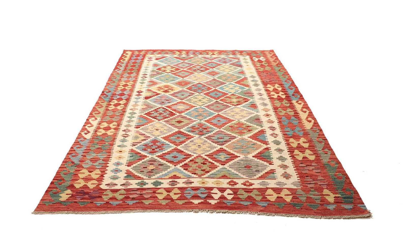 Kelim Teppich 174 x 246 cm, handgewebt, rustikales Flair, Wolle