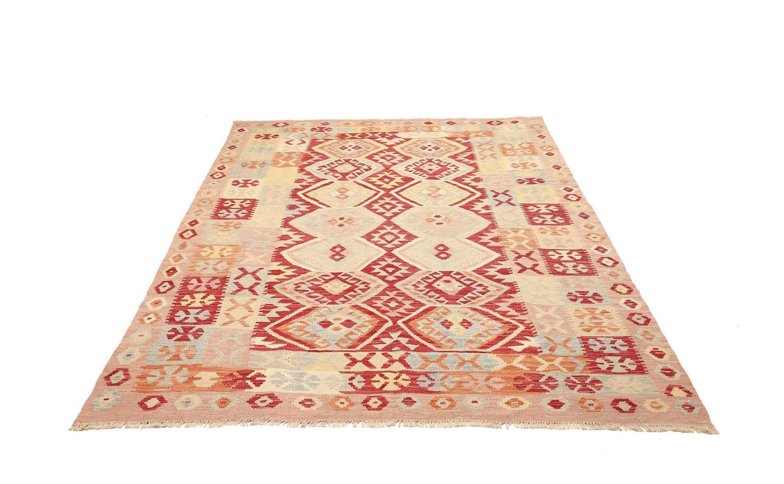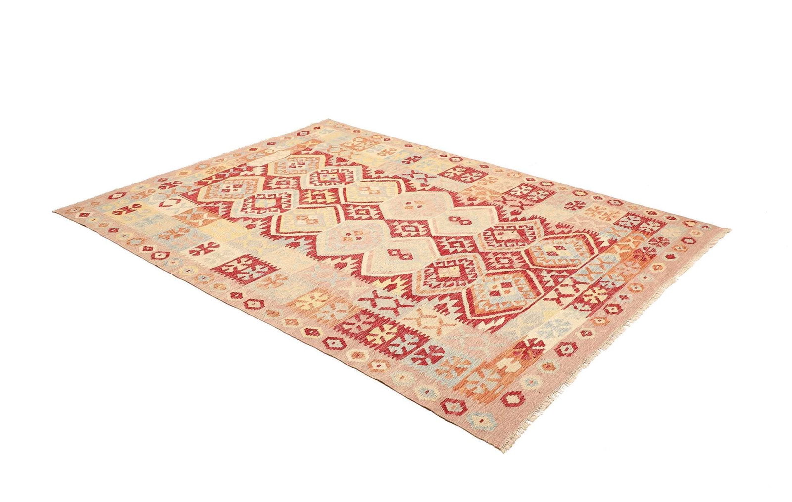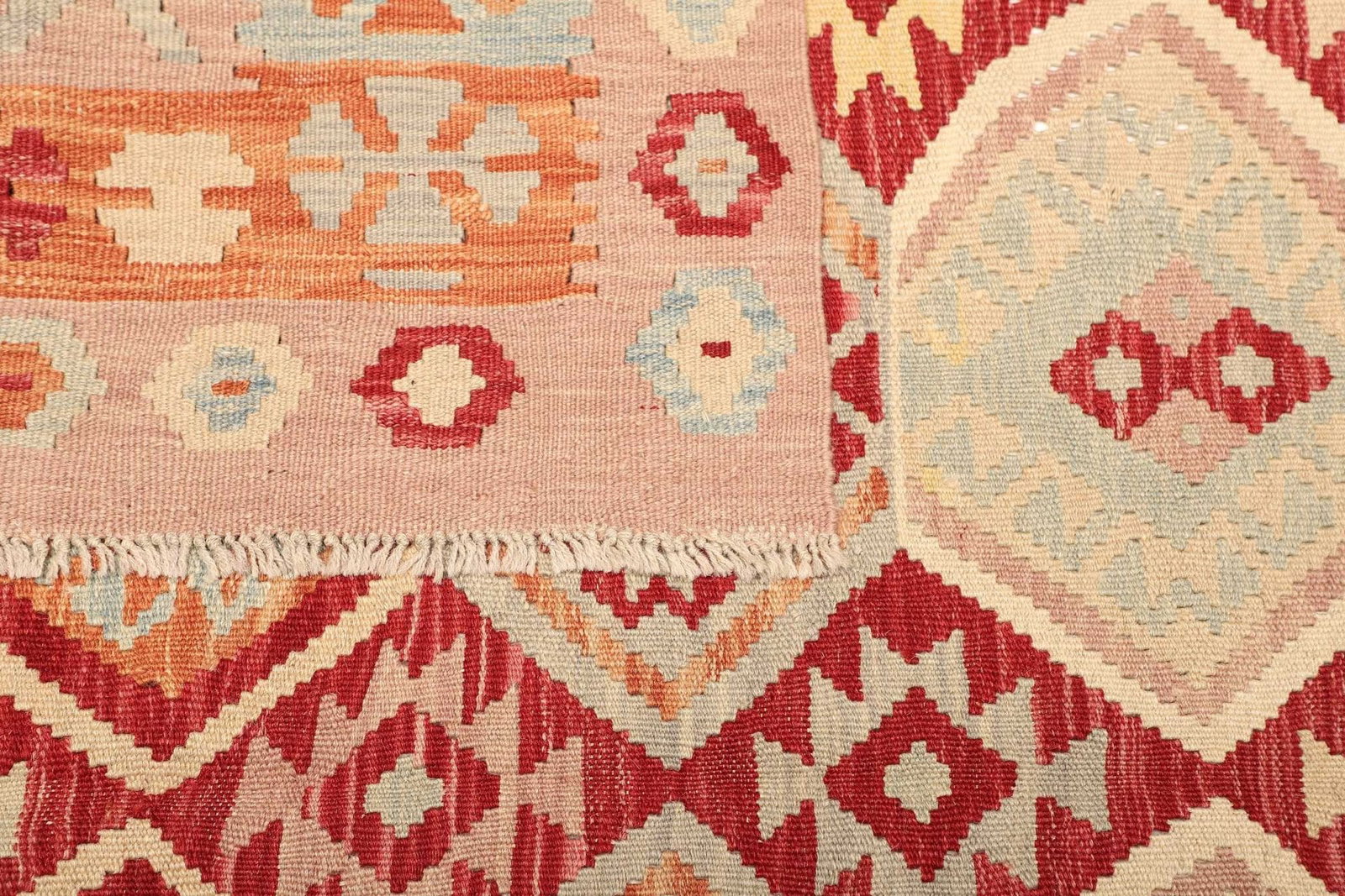 971$ In den WarenkorbKelim 215 x 144 cm – Handgewebt mit identischem Muster auf Vorder- und Rückseite – Orientteppich