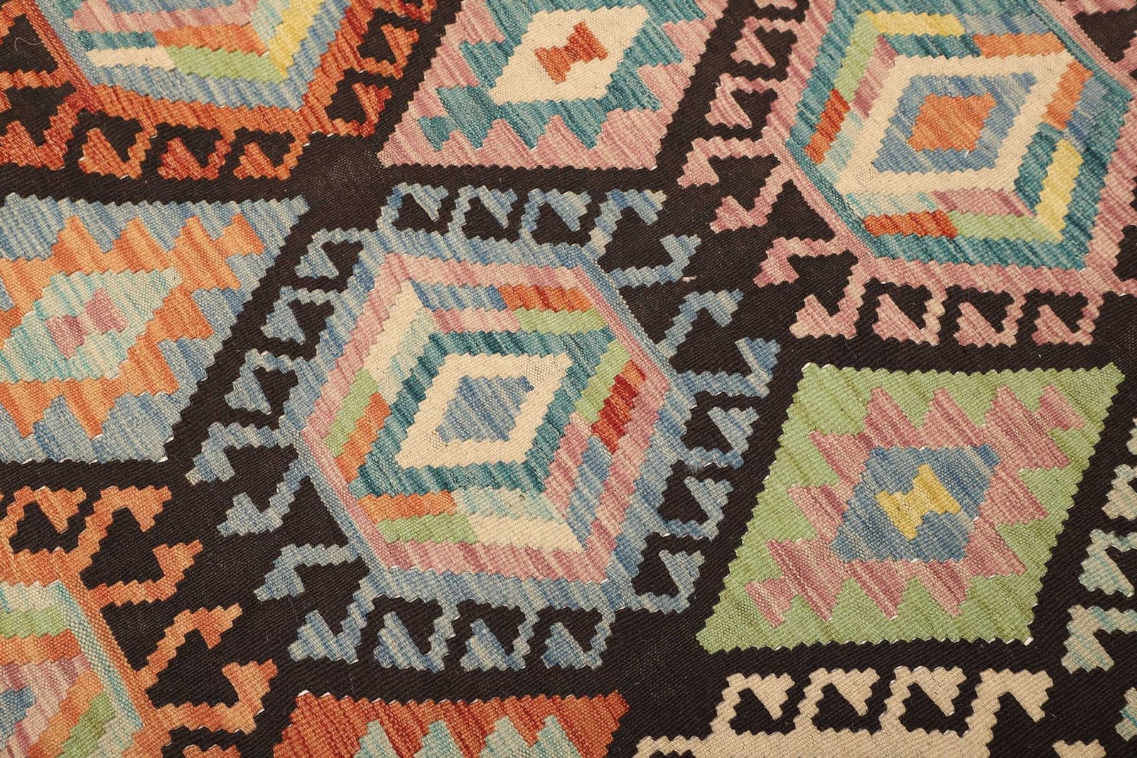 Kelim Teppich aus Schurwolle, handgewebt, rustikal