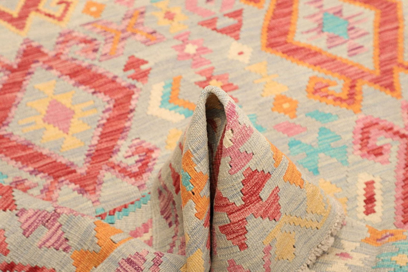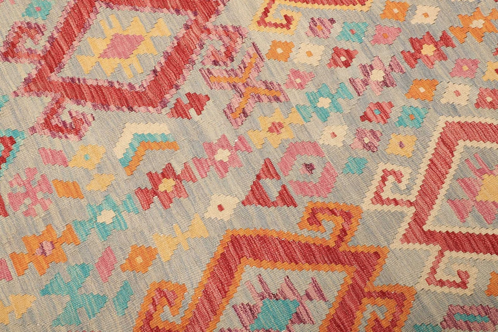 Die handgewebte Technik des Kelims ermöglicht es dem Teppich, ein besonders flach gewebtes und festes Gewebe zu haben, das sich durch eine wunderschöne Struktur auszeichnet. Die hohe Knotendichte dieses Teppichs sorgt zudem für eine lange Lebensdauer und erhält die Farben und Muster über viele Jahre hinweg.