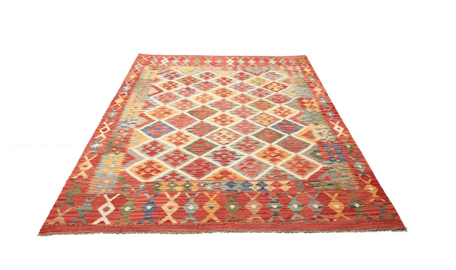 Kelim 215 x 144 cm – Handgewebt mit identischem Muster auf Vorder- und Rückseite – Orientteppich