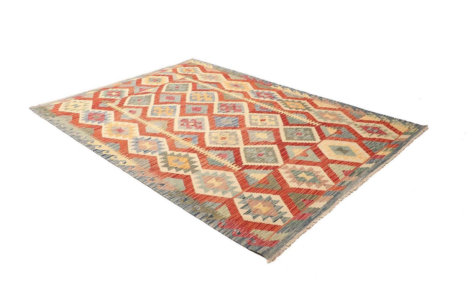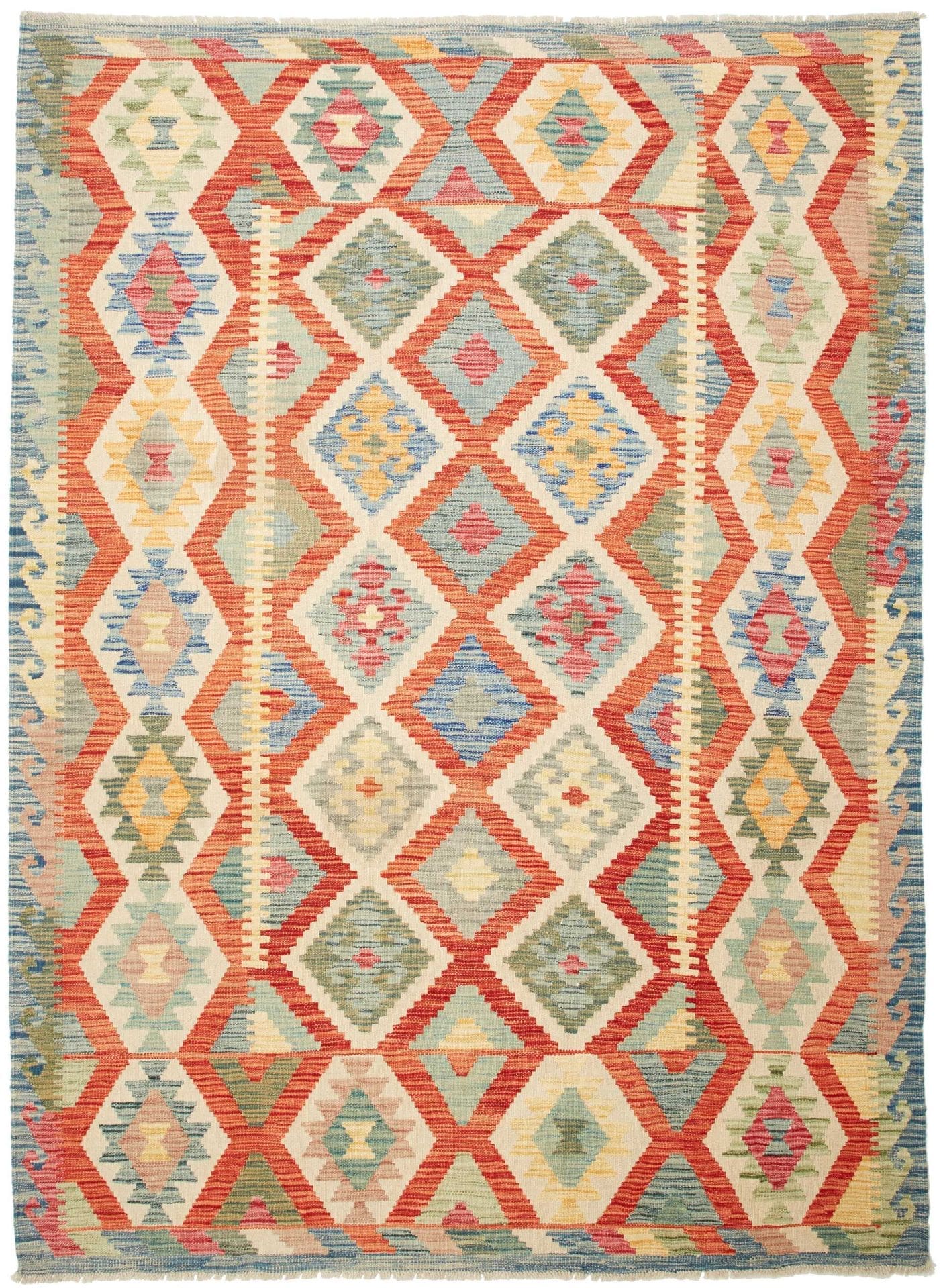 Kelim Teppich 177 x 239cm aus Schurwolle, handgewebt, rustikal