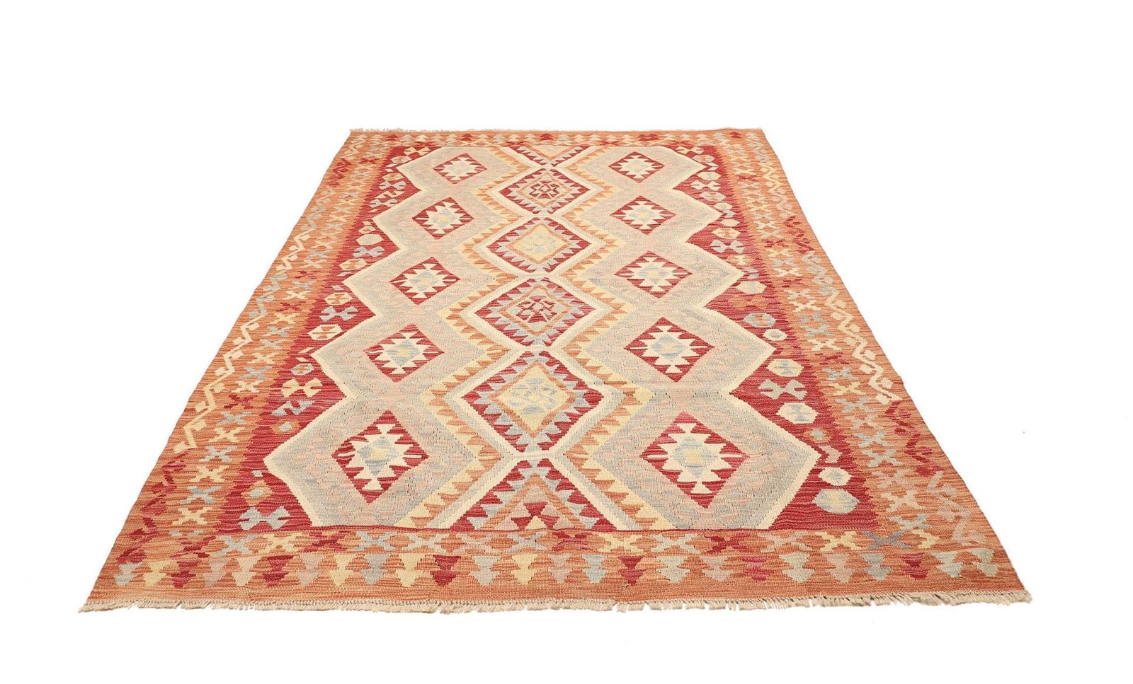 Kelim Teppich 177 x 241cm, handgewebt, rustikales Design, Wolle