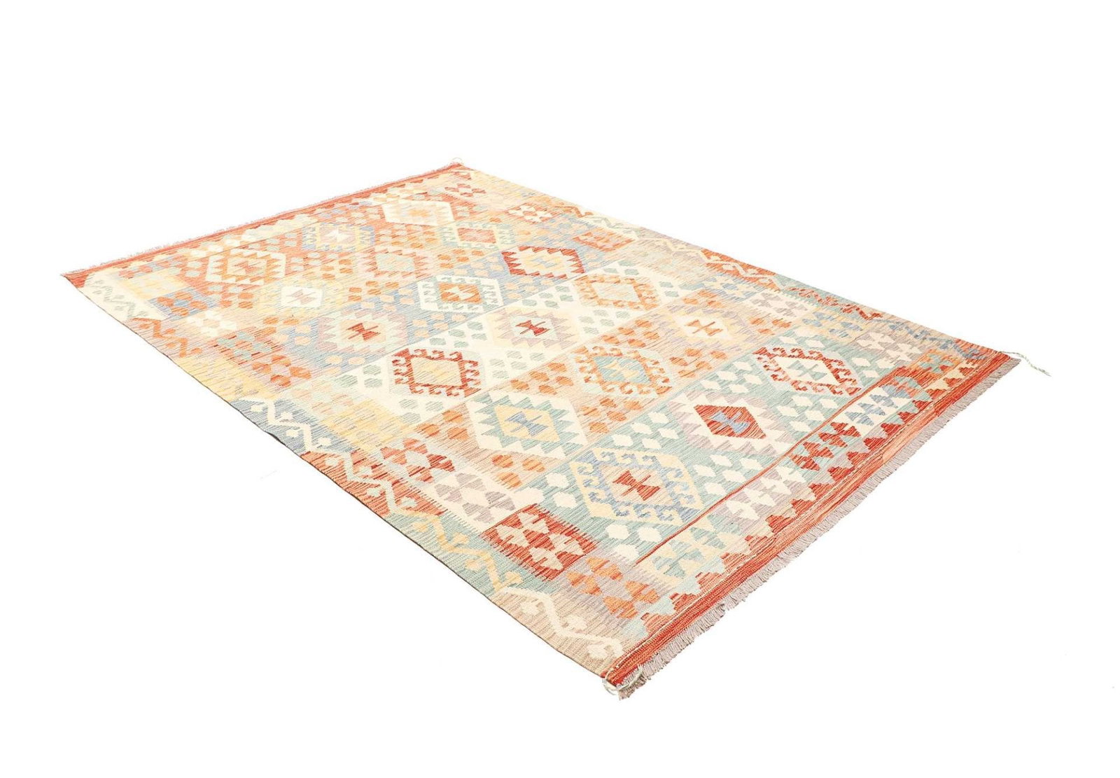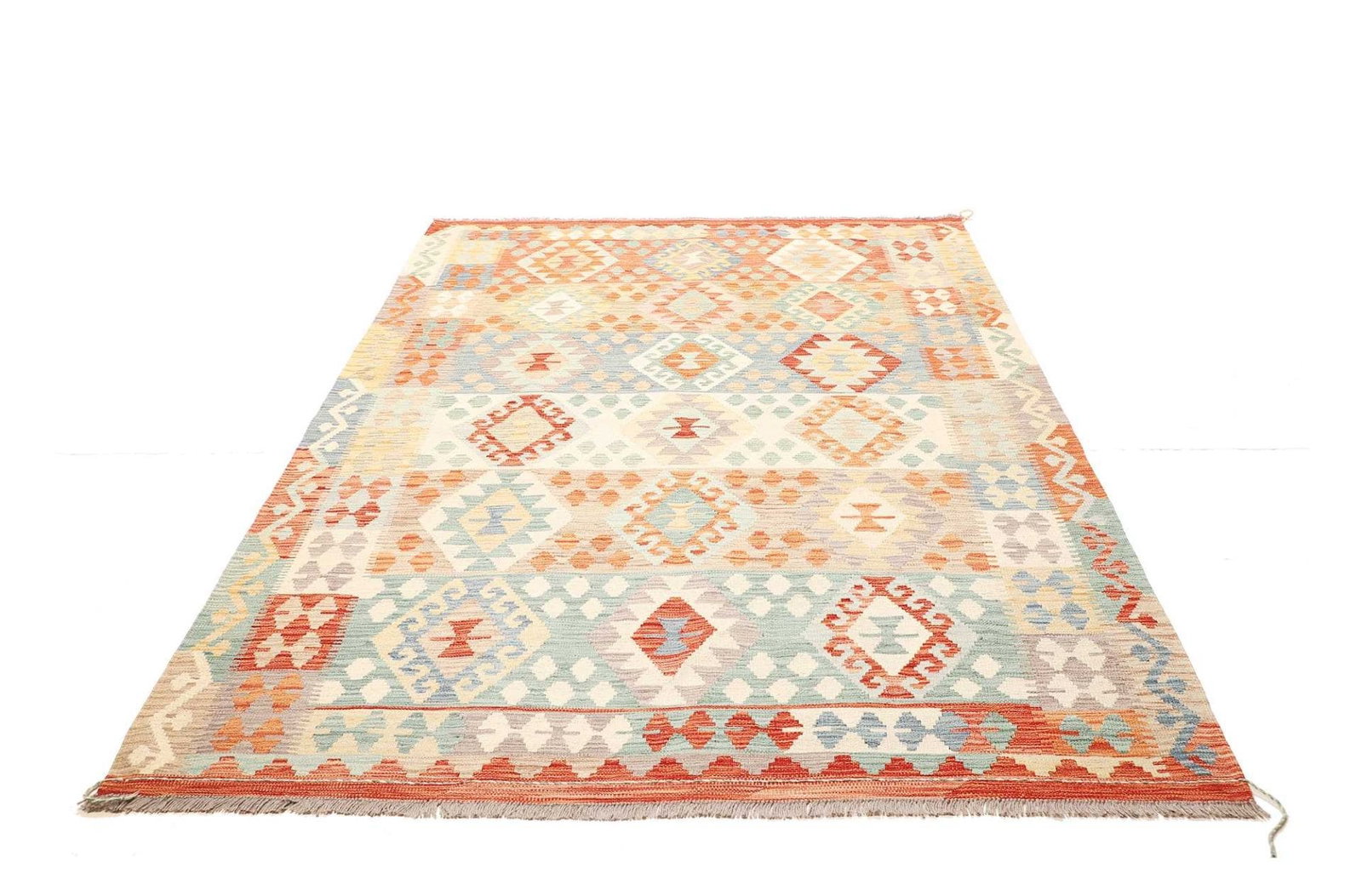 743$Ursprünglicher Preis war: 743$595$Aktueller Preis ist: 595$Kelim Teppich | Knotendichte: 200.000 Knoten/m² | Material: 100% Schurwolle | Kette: 100% Baumwolle | Größe: 177×244 cm | Herkunft: Afghanistan | Zustand: Handgewebte Qualität | Höhe: ca. 5mm