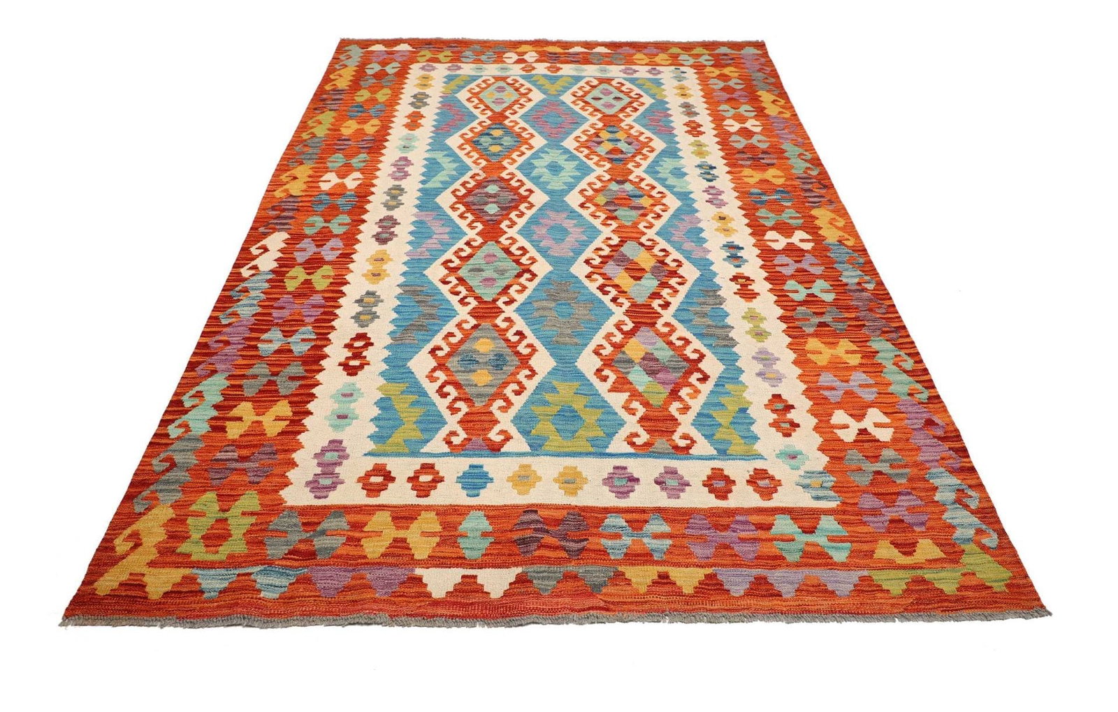 Kelim Teppich 177 x 246cm, handgewebt, rustikales Flair, Wolle