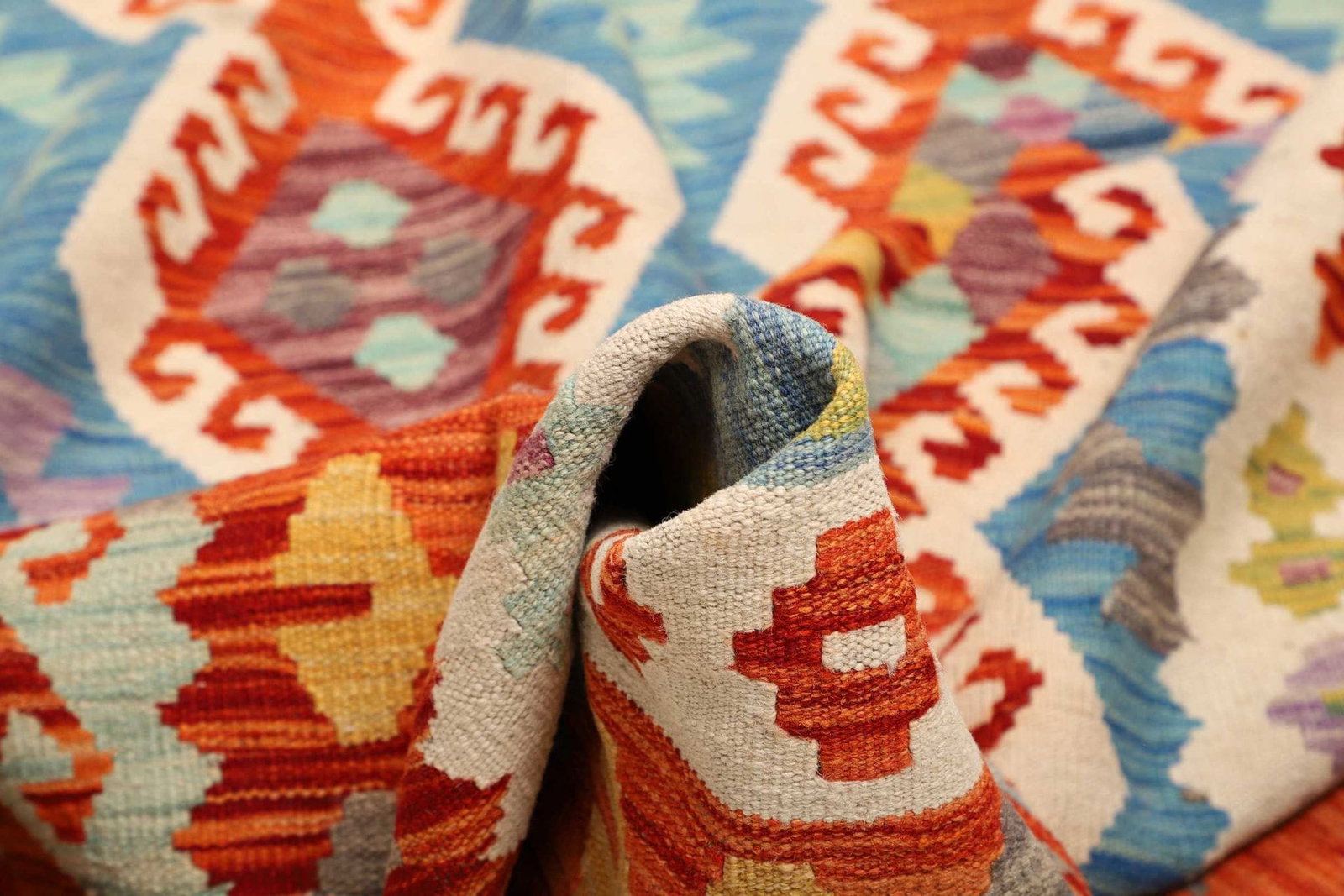 971$ In den WarenkorbKelim 205 x 150 cm – handgewebt mit doppeltem Muster, vielseitig einsetzbar als Teppich oder Wandbehang – handgewebt, Orientteppich