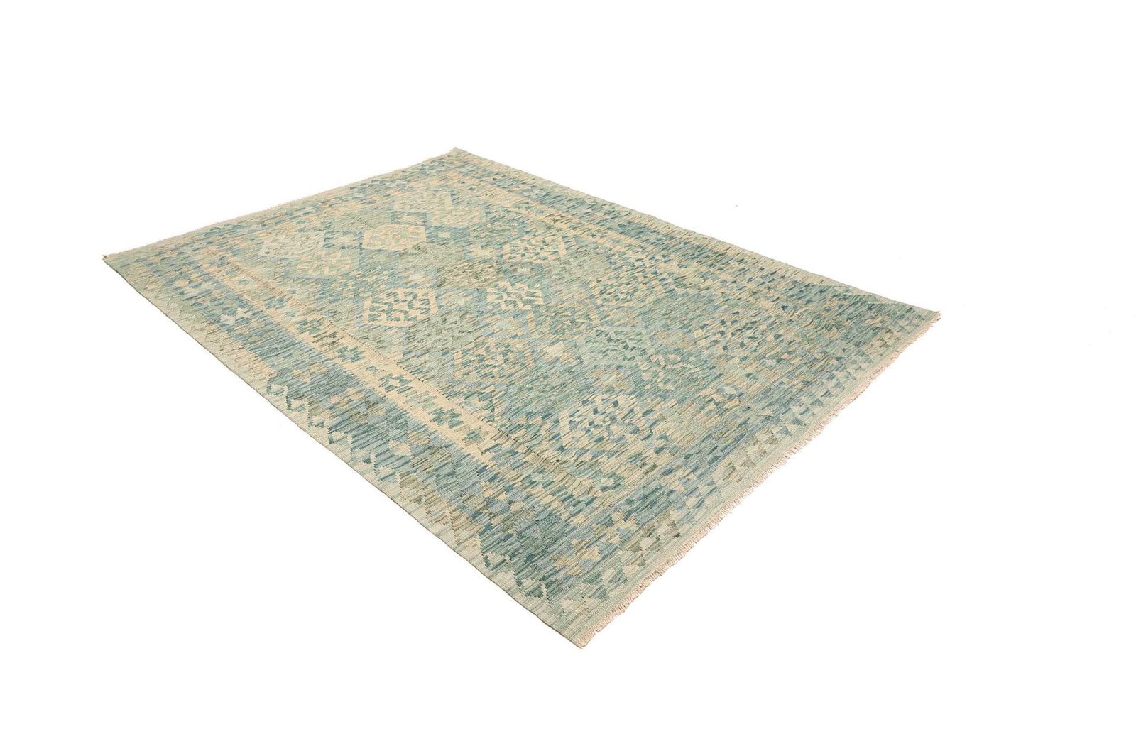 Kelim Teppich | Größe: 178 x 238 cm | Knotendichte: ca. 200.000 Knoten/m² | Material: 100% Schurwolle (Flor), 100% Baumwolle (Kette) | Höhe: ca. 5 mm | Herkunft: Pakistan | Handgewebte Qualität | Vielseitig einsetzbar als Teppich, Vorhang oder Wandschmuck