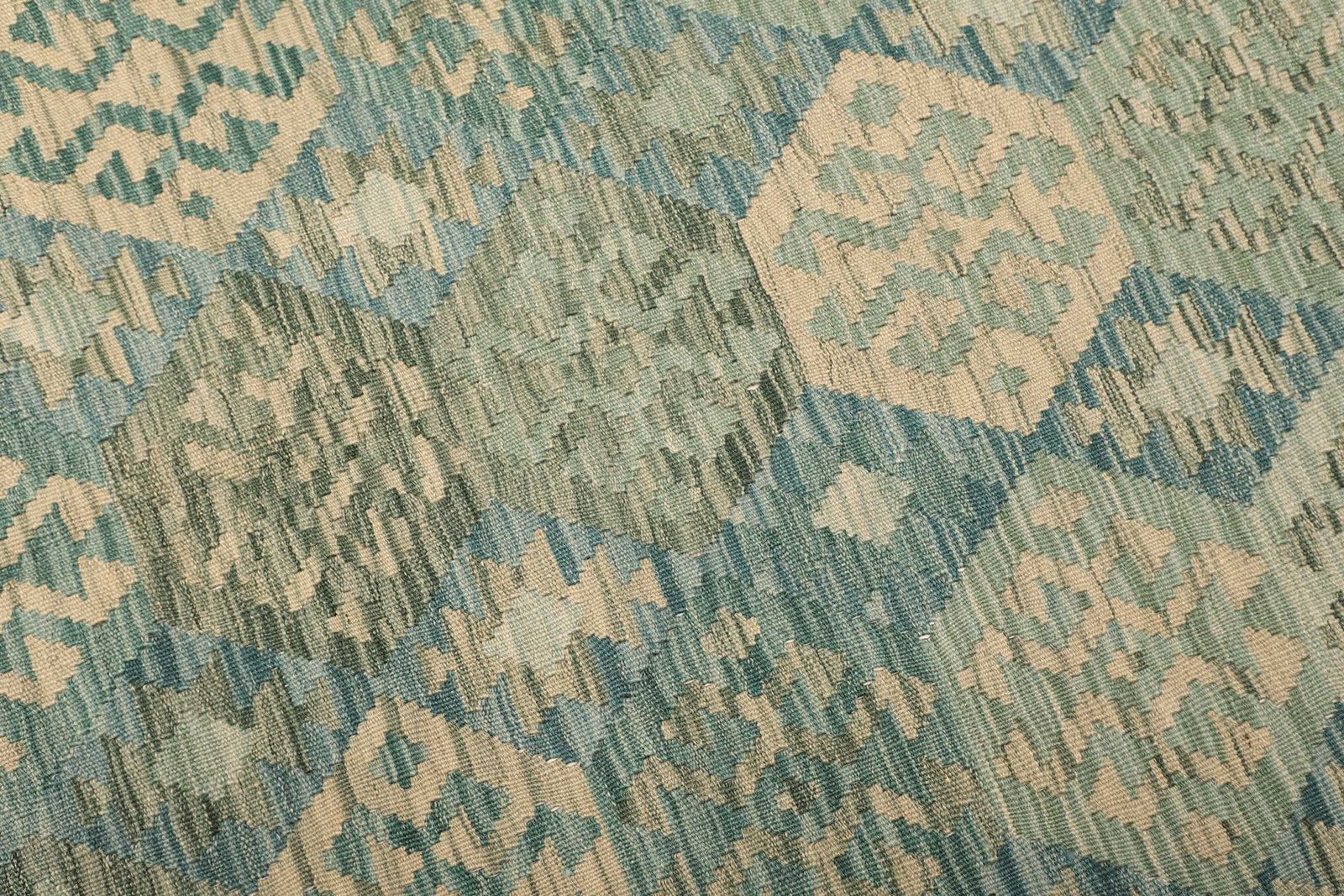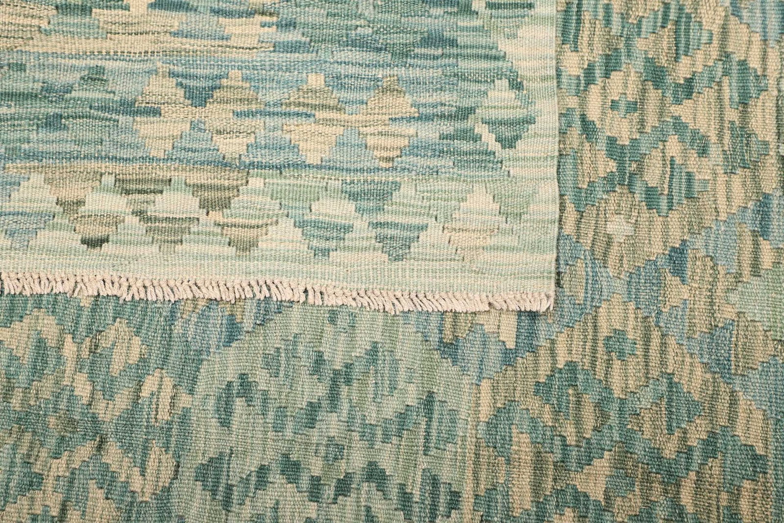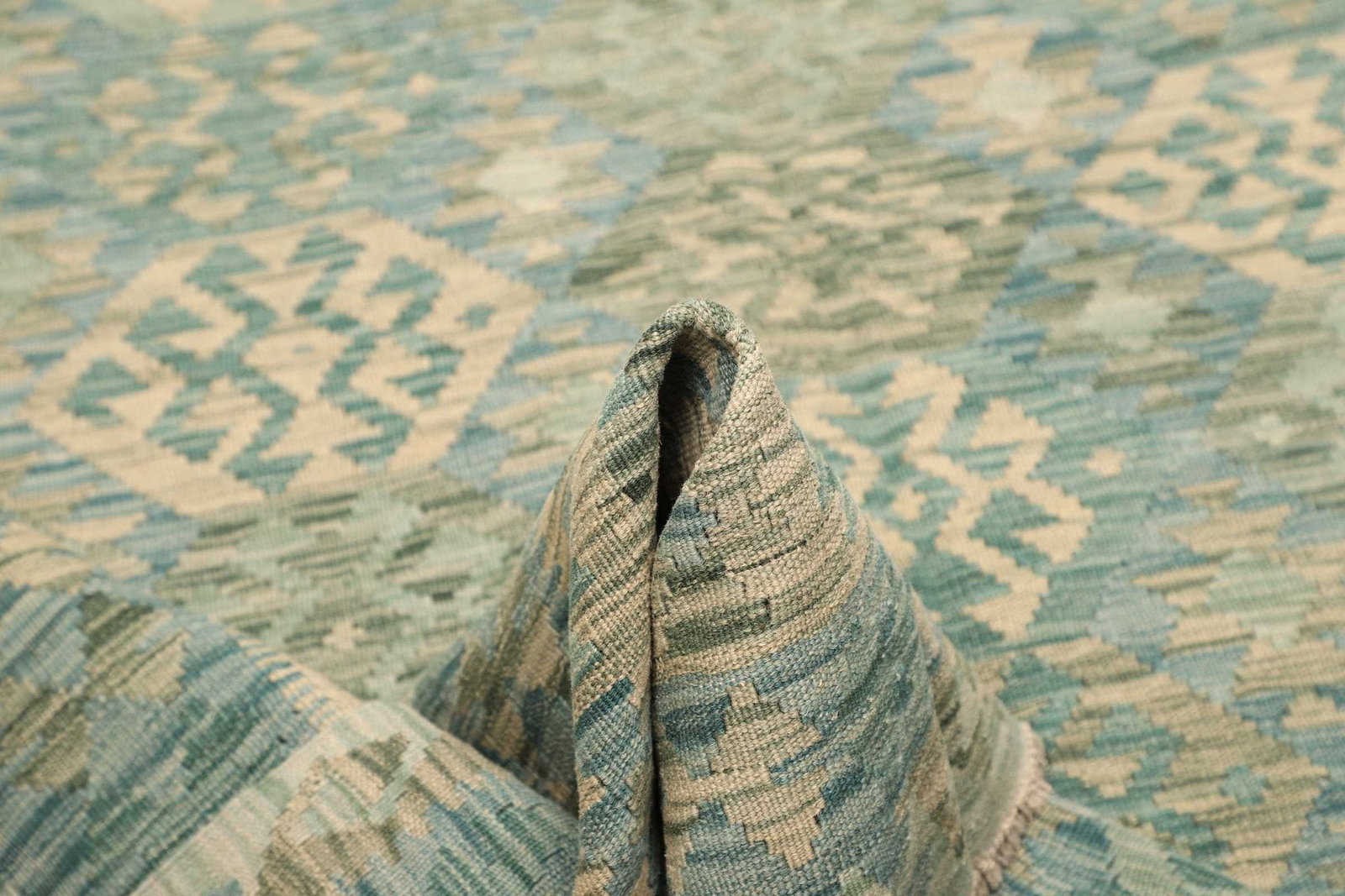 Ein weiterer Vorteil dieses handgewebten Kelim Teppichs ist seine Vielseitigkeit. Er lässt sich nicht nur in Wohnzimmern, sondern auch in Eingangsbereichen, Schlafzimmern oder Esszimmern einsetzen. Durch seine schlichte Eleganz passt er sowohl zu rustikalen als auch zu modernen Interieurs. Die Pflege des Teppichs ist unkompliziert: Regelmäßiges Staubsaugen genügt, um seine Schönheit und Frische zu bewahren. Bei Bedarf kann er auch mit einem feuchten Tuch abgewischt werden, und hartnäckige Flecken sind mit speziellen Teppichreiniger leicht zu entfernen. Zudem ist Wolle von Natur aus antistatisch, wodurch Staub und Schmutz nicht so schnell haften bleiben.