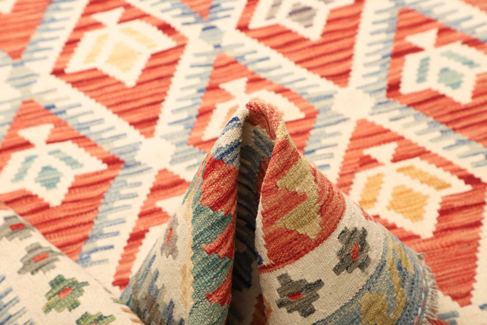 Ein handgewebter Kelim Teppich bietet viele Vorteile, die ihn von maschinell hergestellten Teppichen abheben. Die Liebe zum Detail und die Sorgfalt der Handwerker tragen zur Einzigartigkeit jedes Teppichs bei. Die natürliche Schurwolle sorgt nicht nur für einen angenehmen Fußkomfort, sondern hat auch schmutzabweisende Eigenschaften, sodass der Teppich einfacher zu reinigen ist.