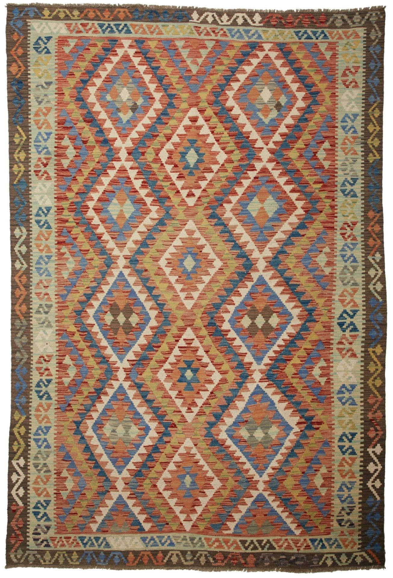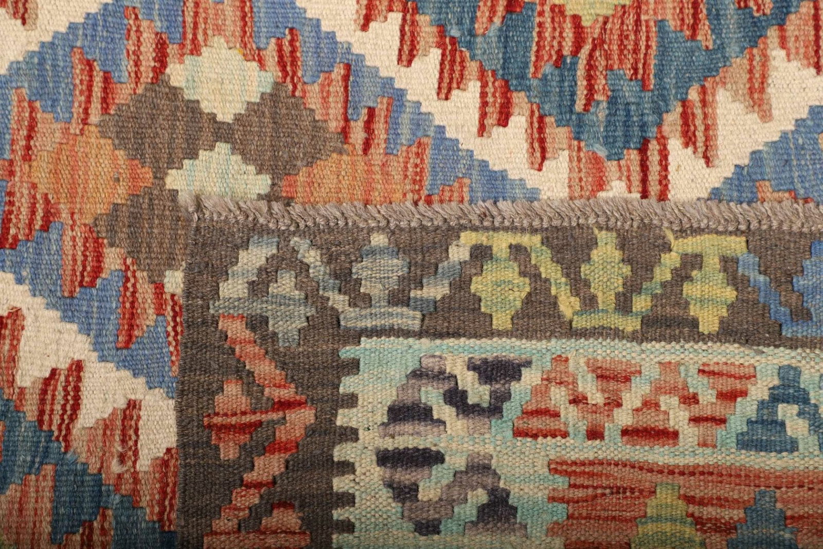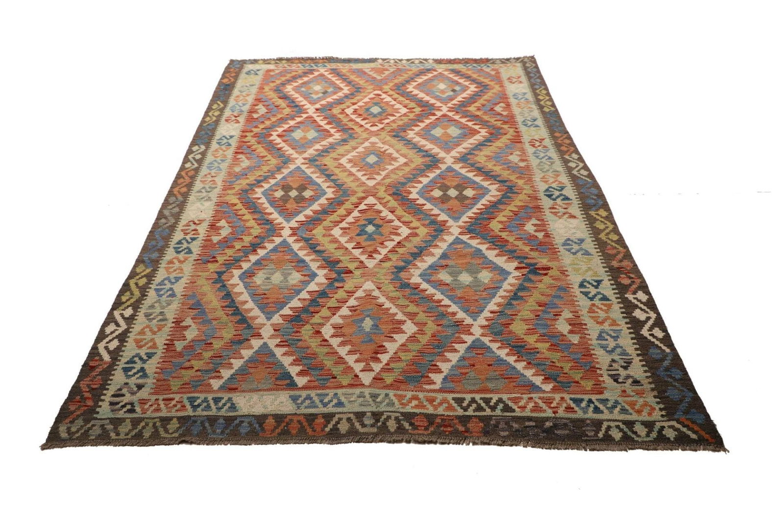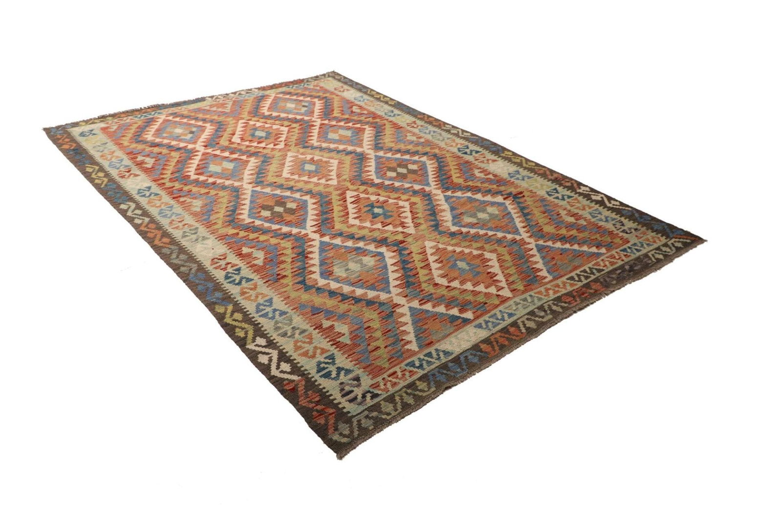 Handgewebter Kelim | Knotendichte: ca. 200.000 Knoten/m² | Material: 100% Schurwolle und 100% Baumwolle | Größe: 178×258 cm | Herkunft: Pakistan | Zustand: Sehr gut | Rustikales Flair für moderne Wohnräume