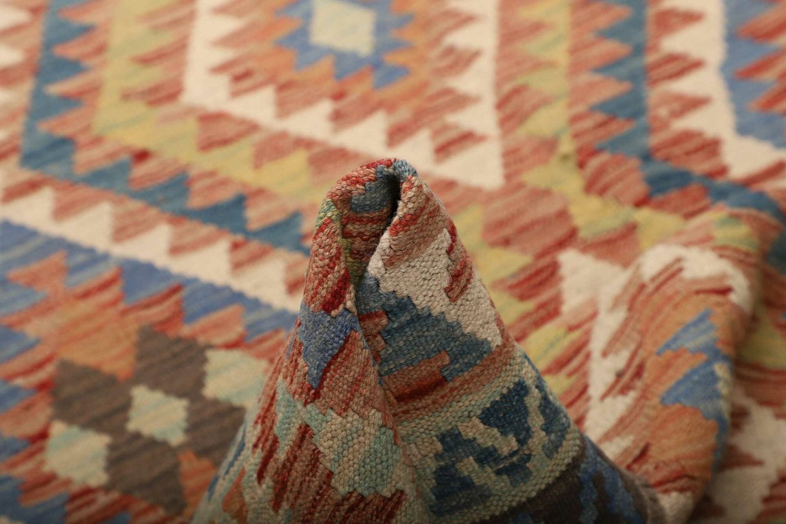 Der Kelim Teppich wurde aus hochwertigen Materialien gefertigt, die ihn robust und langlebig machen. Die handgewebte Technik sorgt dafür, dass jedes Stück ein Unikat ist. Diese Teppiche sind nicht nur wunderschön, sondern auch pflegeleicht und für jeden Raum geeignet. Die Verwendung von natürlichen Fasern verleiht dem Teppich eine angenehme Haptik, während die traditionellen Webtechniken für eine hohe Knotendichte sorgen, die sowohl die Solidität als auch die Langlebigkeit des Teppichs unterstützt.