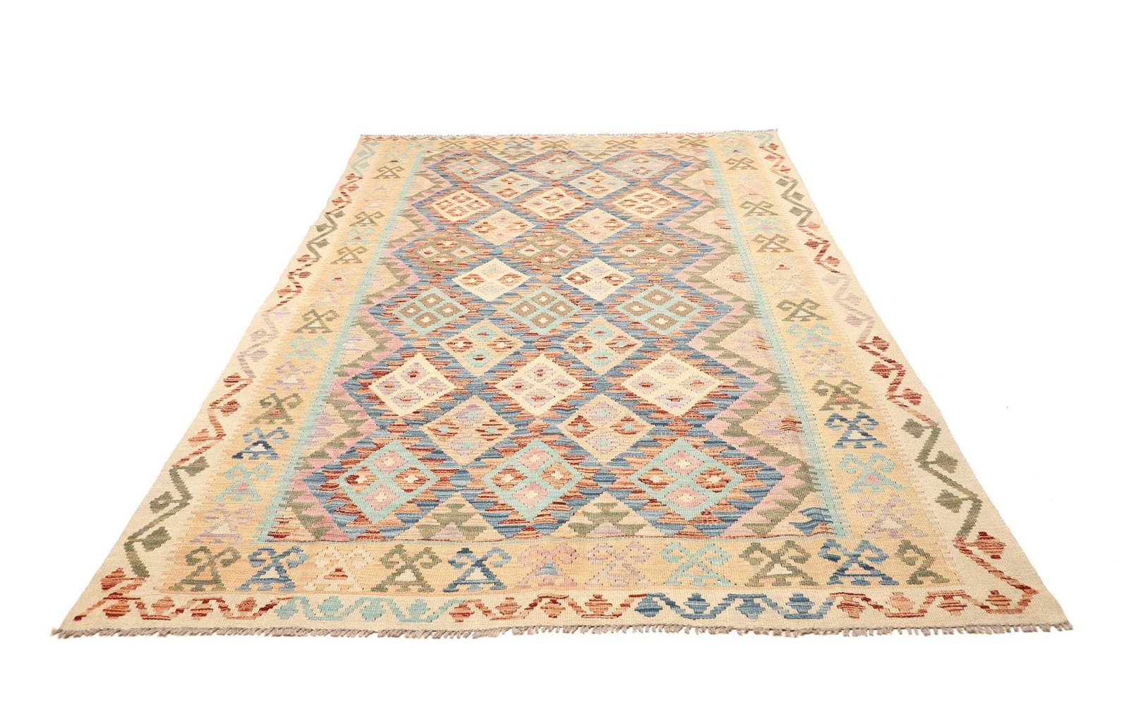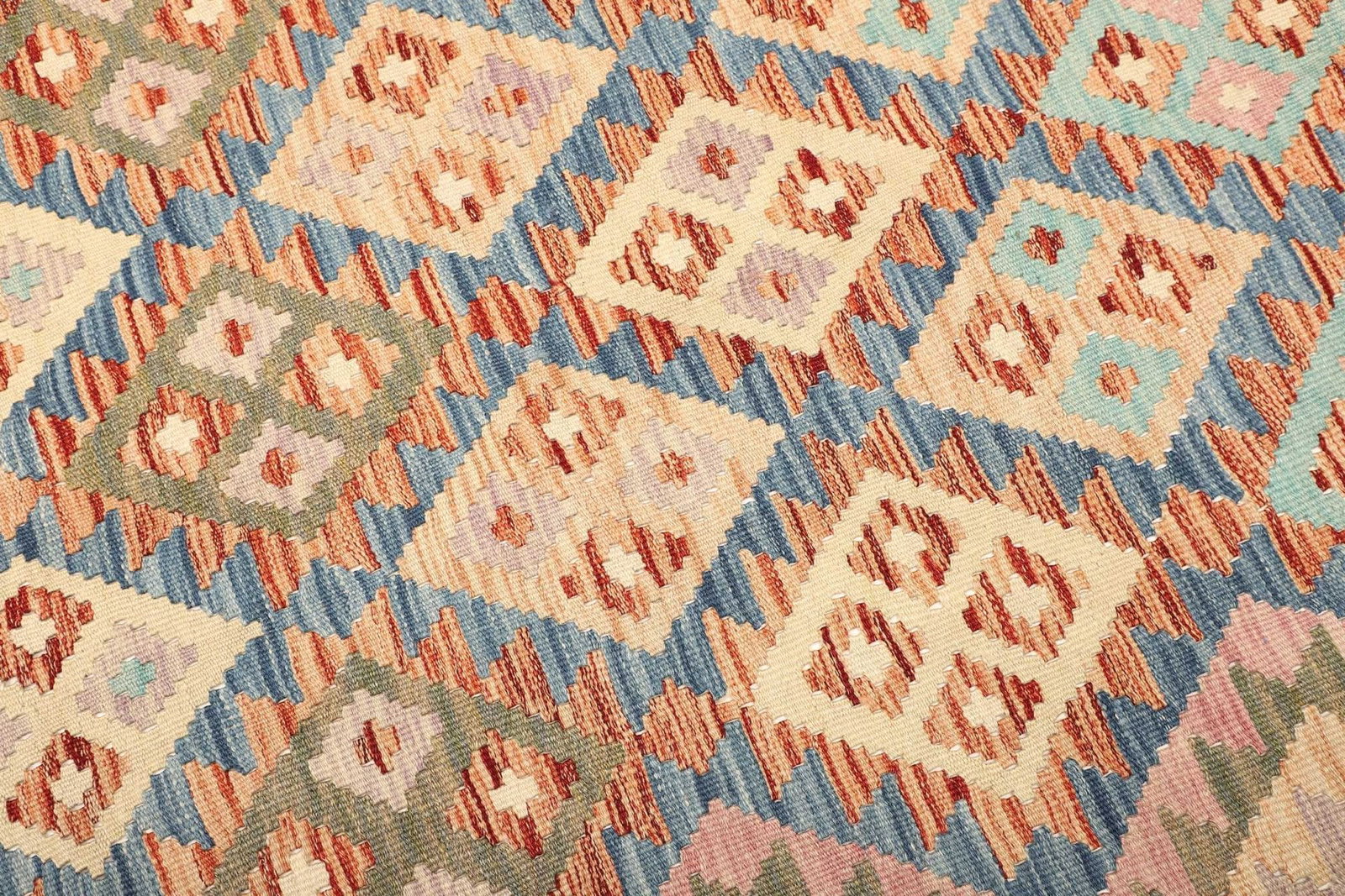 Kelim Teppich | Knotendichte: ca. 200.000 Knoten/m² | Material: 100% Schurwolle (Flor), 100% Baumwolle (Kette) | Größe: 178 x 267 cm | Zustand: Handgewebt | Herkunft: Pakistan | Höhe: ca. 5 mm