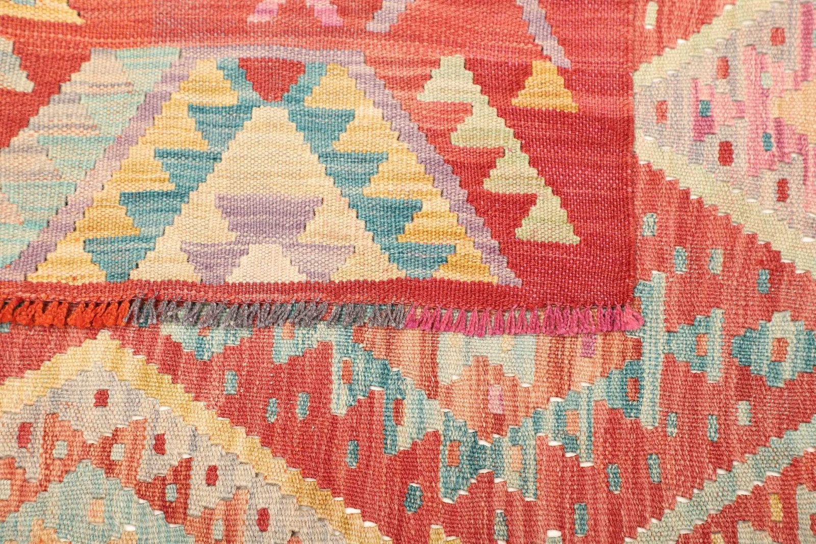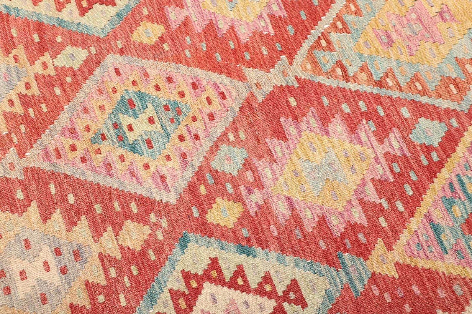 Die faszinierende Knotendichte und die handgewebte Technik garantieren, dass jeder Teppich ein Unikat ist. Kelim Teppiche sind bekannt für ihre flache Webweise und die Verwendung farbenfroher geometrischer und floraler Muster, die eine harmonische und einladende Atmosphäre schaffen. Durch seine rustikale Optik passt dieser Teppich hervorragend in verschiedene Einrichtungsstile, von skandinavisch bis mediterran.