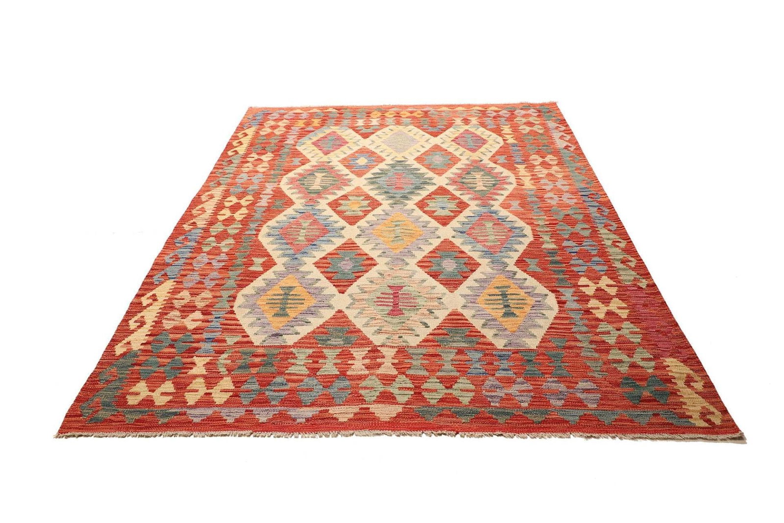Kelim Teppich | Knotendichte: ca. 200.000 Knoten/m² | Material: 100% Schurwolle (Flor), 100% Baumwolle (Kette) | Größe: 179 x 240 cm | Höhe: ca. 5 mm | Zustand: Handgewebte Qualität | Herkunft: Pakistan | Vielseitig einsetzbar als Teppich, Vorhang oder Wandschmuck