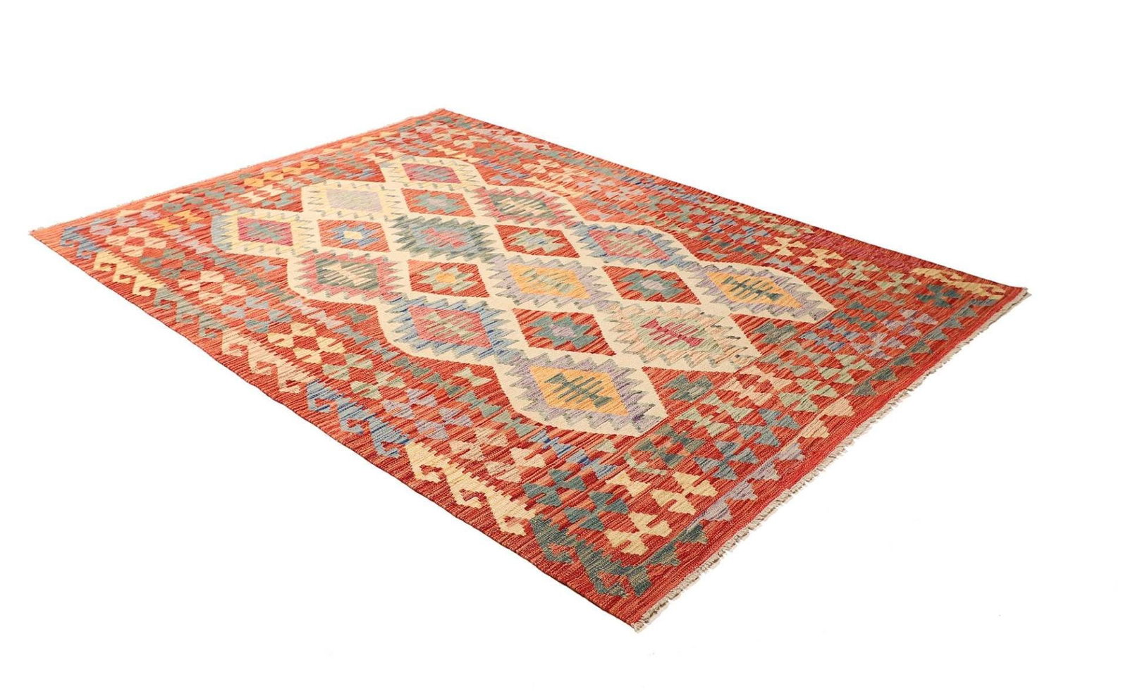 876$ In den WarenkorbKelim 206 x 145 cm – Gewebt mit identischen Mustern auf Vorder- und Rückseite, ideal als Wandbehang, handgewebt, Orientteppich