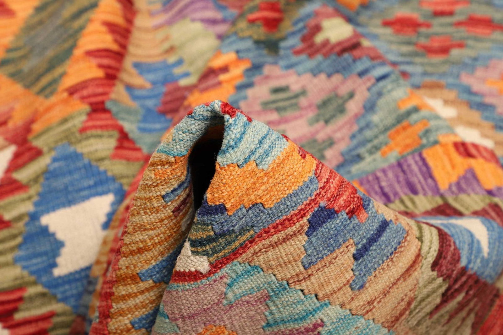 Ein weiterer Vorteil des handgewebten Kelim Teppichs ist die Umweltfreundlichkeit des Materials. Schurwolle ist ein nachwachsender Rohstoff, und die Herstellung der Teppiche erfolgt oftmals in sozial verantwortlichen kleinen Werkstätten, die die Tradition des Teppichwebens bewahren. Dies macht den Kelim nicht nur zu einem schönen, sondern auch zu einem nachhaltigen Produkt.