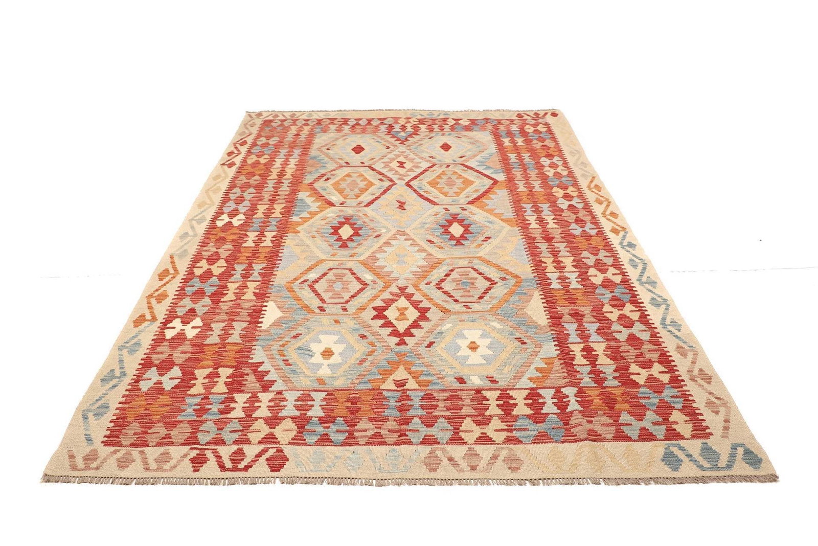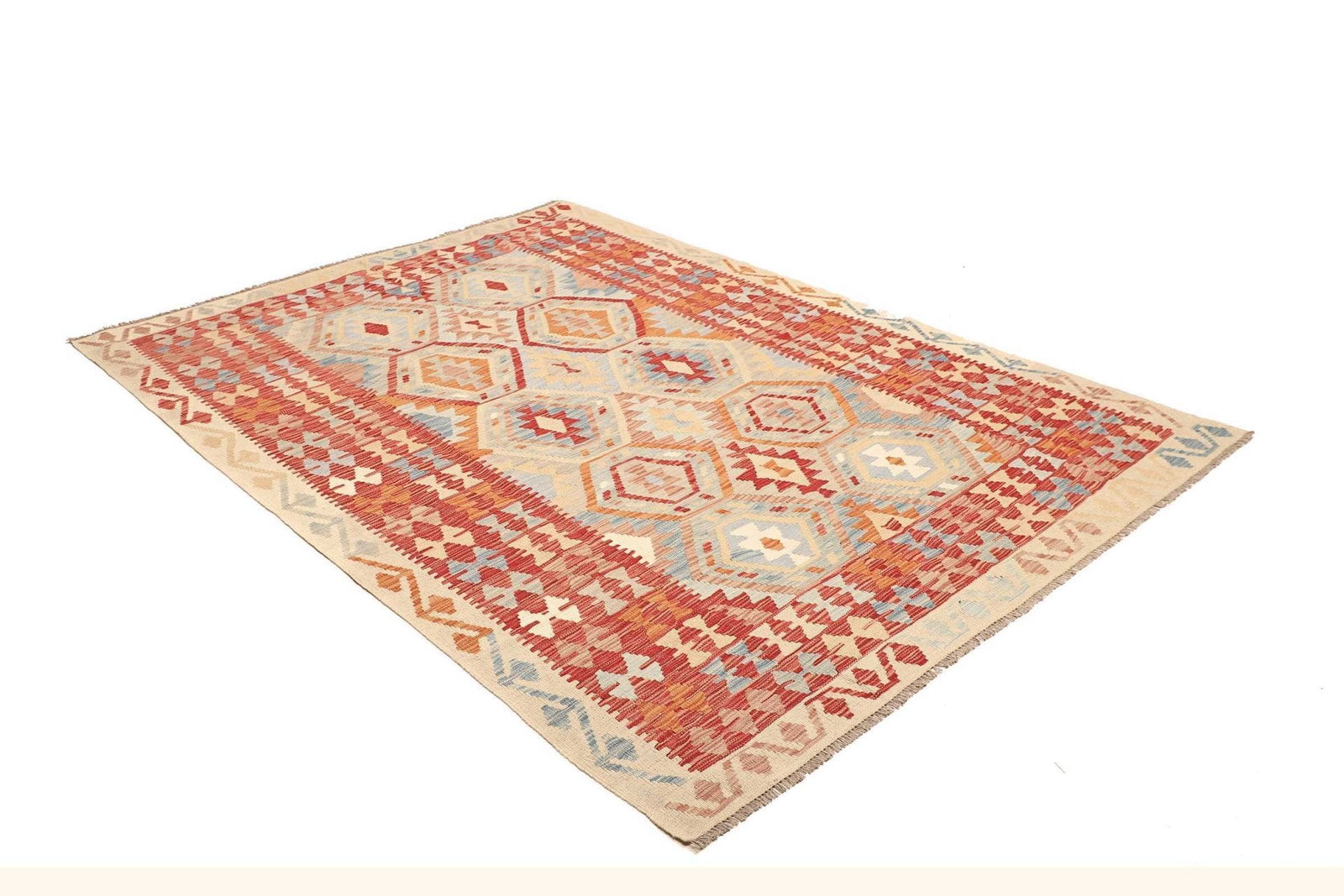 578$ In den WarenkorbKelim 205 x 150 cm – handgewebt mit doppeltem Muster, vielseitig einsetzbar als Teppich oder Wandbehang – handgewebt, Orientteppich