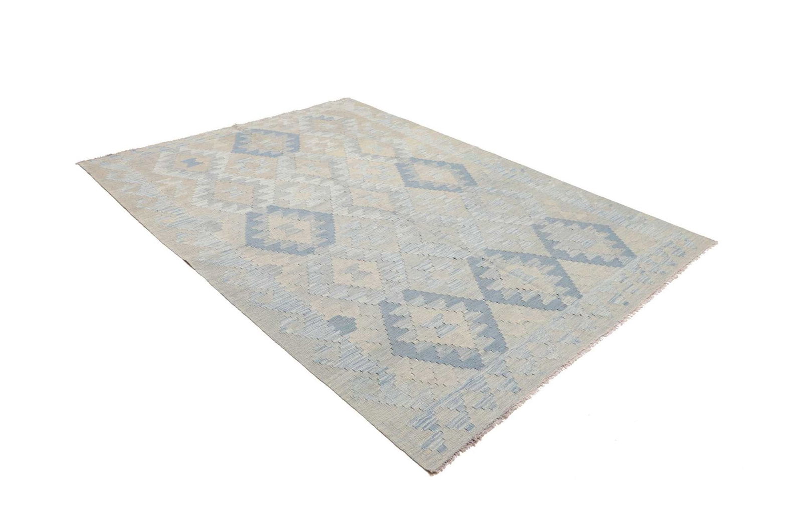 Der Kelim Teppich ist handgewebt und zeichnet sich durch einen dünnen Flor aus 100% Schurwolle aus. Die Kette besteht aus 100% Baumwolle, die eine hohe Strapazierfähigkeit und eine feine Struktur gewährleistet. Im Gegensatz zu klassischen Orientteppichen, die geknüpft werden, wird der Kelim gewebt, was ihm eine besondere Leichtigkeit und Flexibilität verleiht. Diese Teppiche sind in vielen orientalischen Ländern, insbesondere in der Türkei, dem Iran, Afghanistan und Nordafrika, seit Jahrhunderten von Bedeutung.