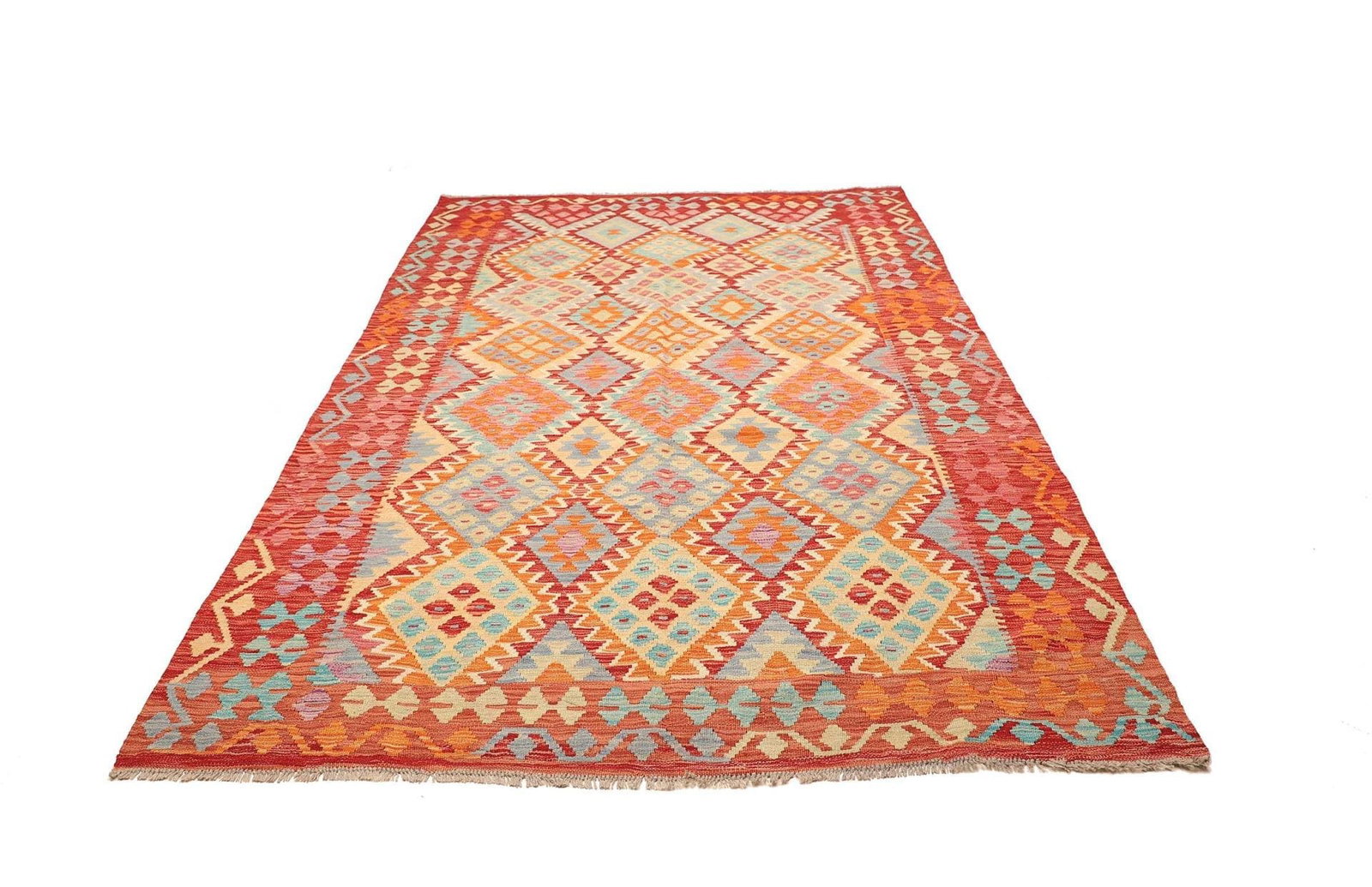 482$ In den WarenkorbKelim 205 x 150 cm – handgewebt mit doppeltem Muster, vielseitig einsetzbar als Teppich oder Wandbehang – handgewebt, Orientteppich