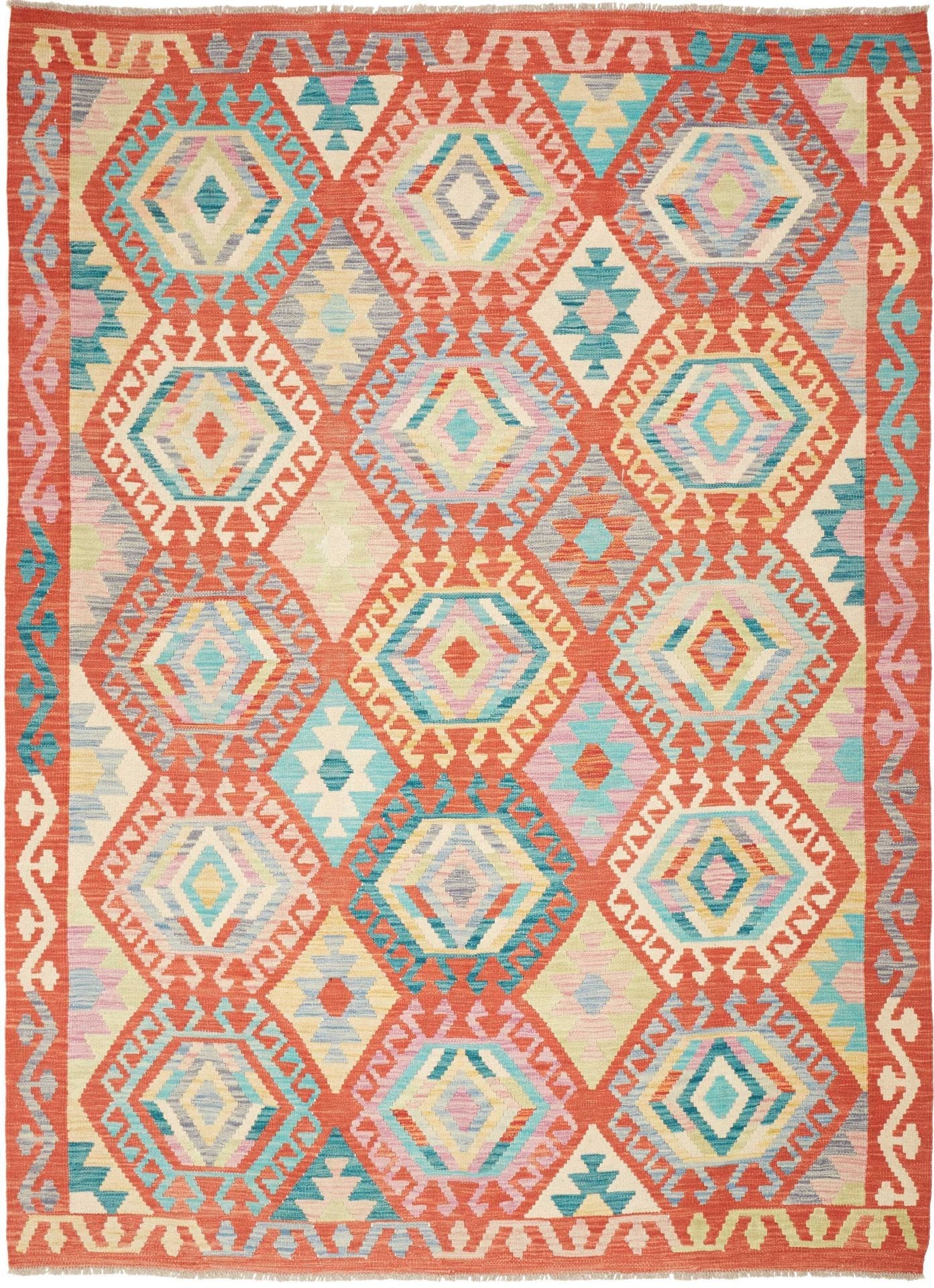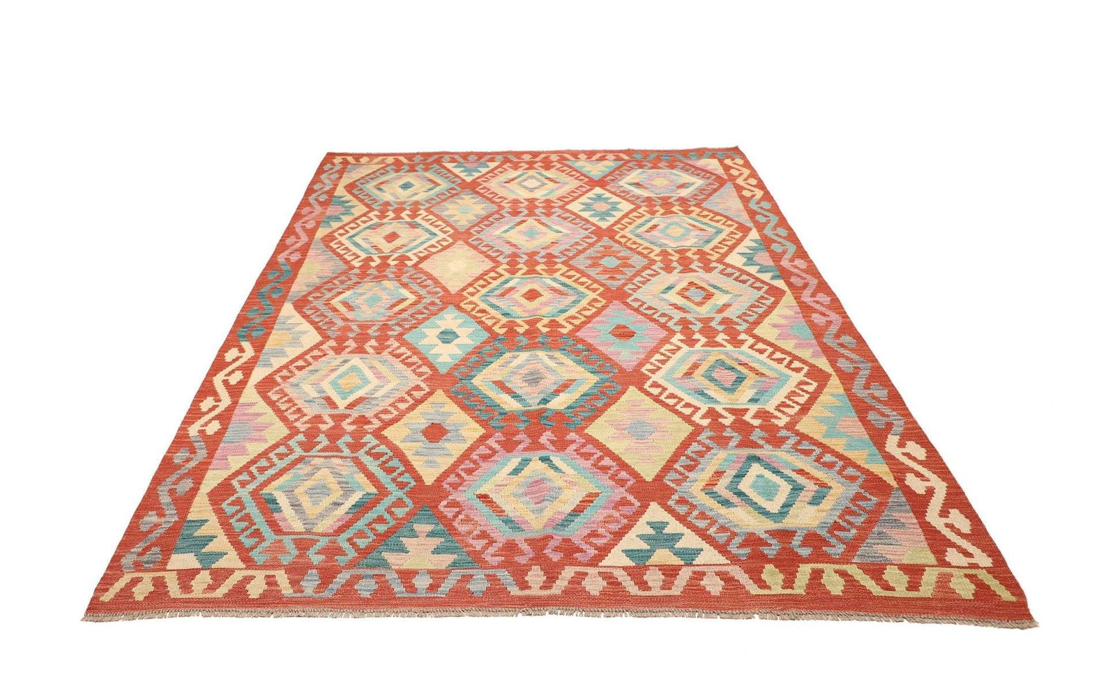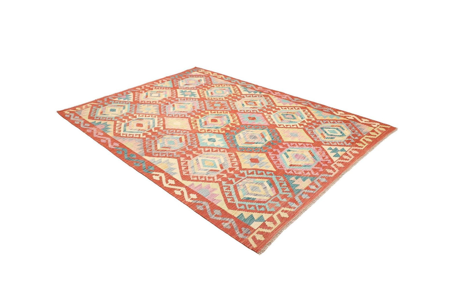 Kelim Teppich | Knotendichte: ca. 200.000 Knoten/m² | Material: 100% Schurwolle (Flor), 100% Baumwolle (Kette) | Größe: 181 x 236 cm | Höhe: ca. 5 mm | Herkunft: Pakistan | Handgewebte Qualität | Rustikales Flair für moderne Einrichtungen