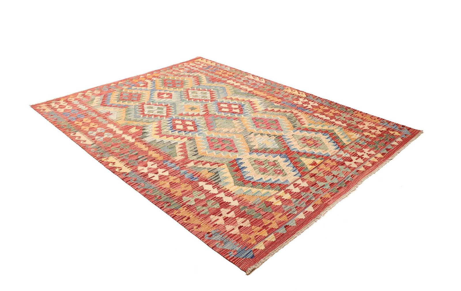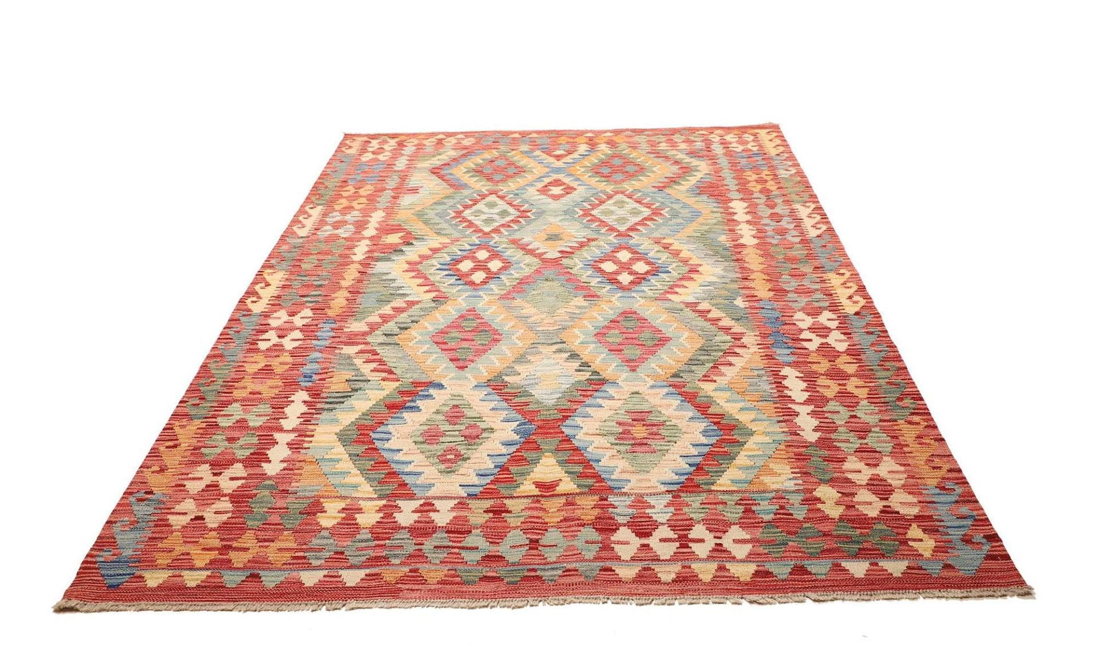 Kelim Teppich | Knotendichte: ca. 200.000 Knoten/m² | Material: 100% Schurwolle (Flor) und 100% Baumwolle (Kette) | Größe: 182 x 240 cm | Verarbeitung: Handgewebt | Herkunft: Pakistan | Höhe: ca. 5 mm | Rustikales Flair für modernes Wohnen