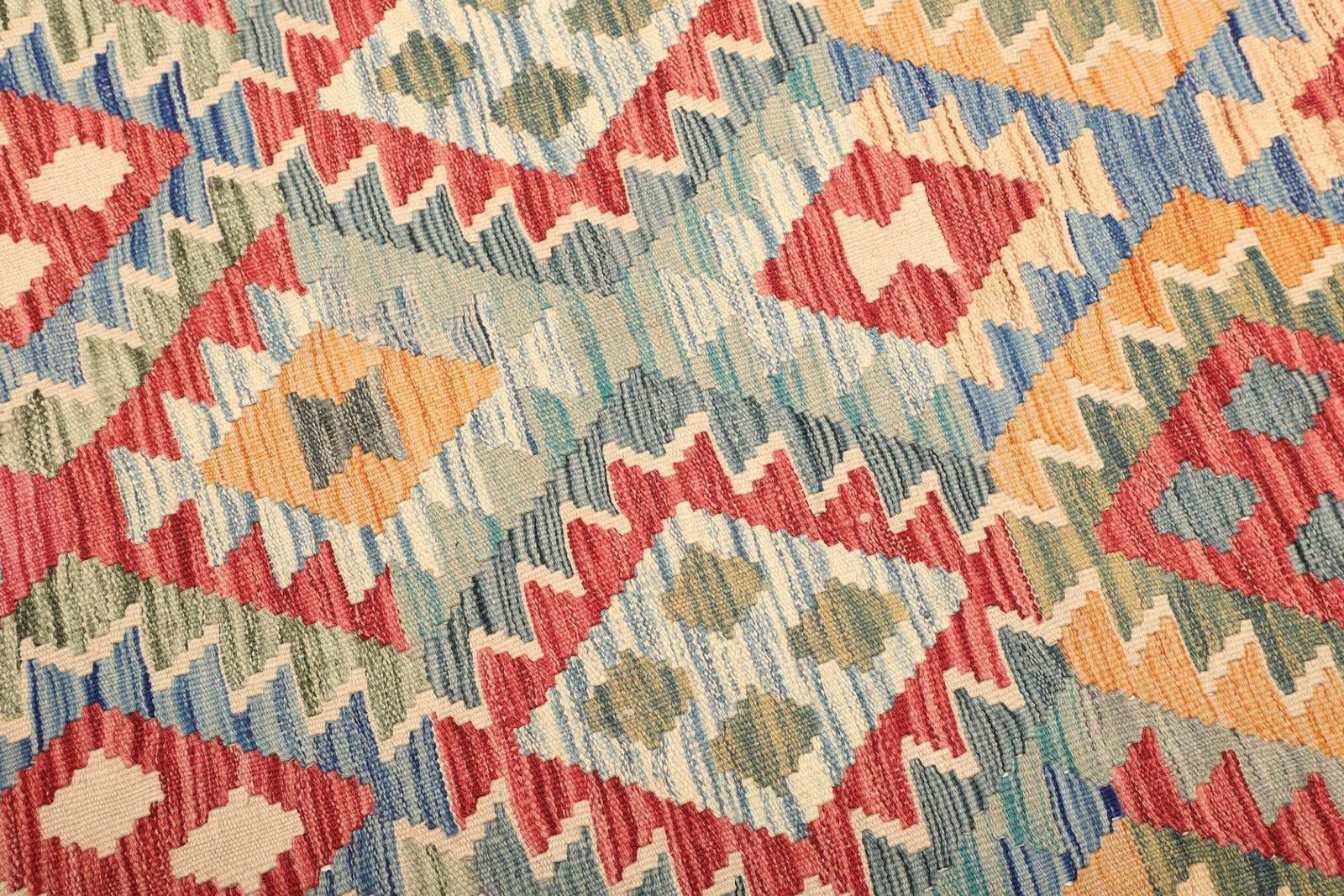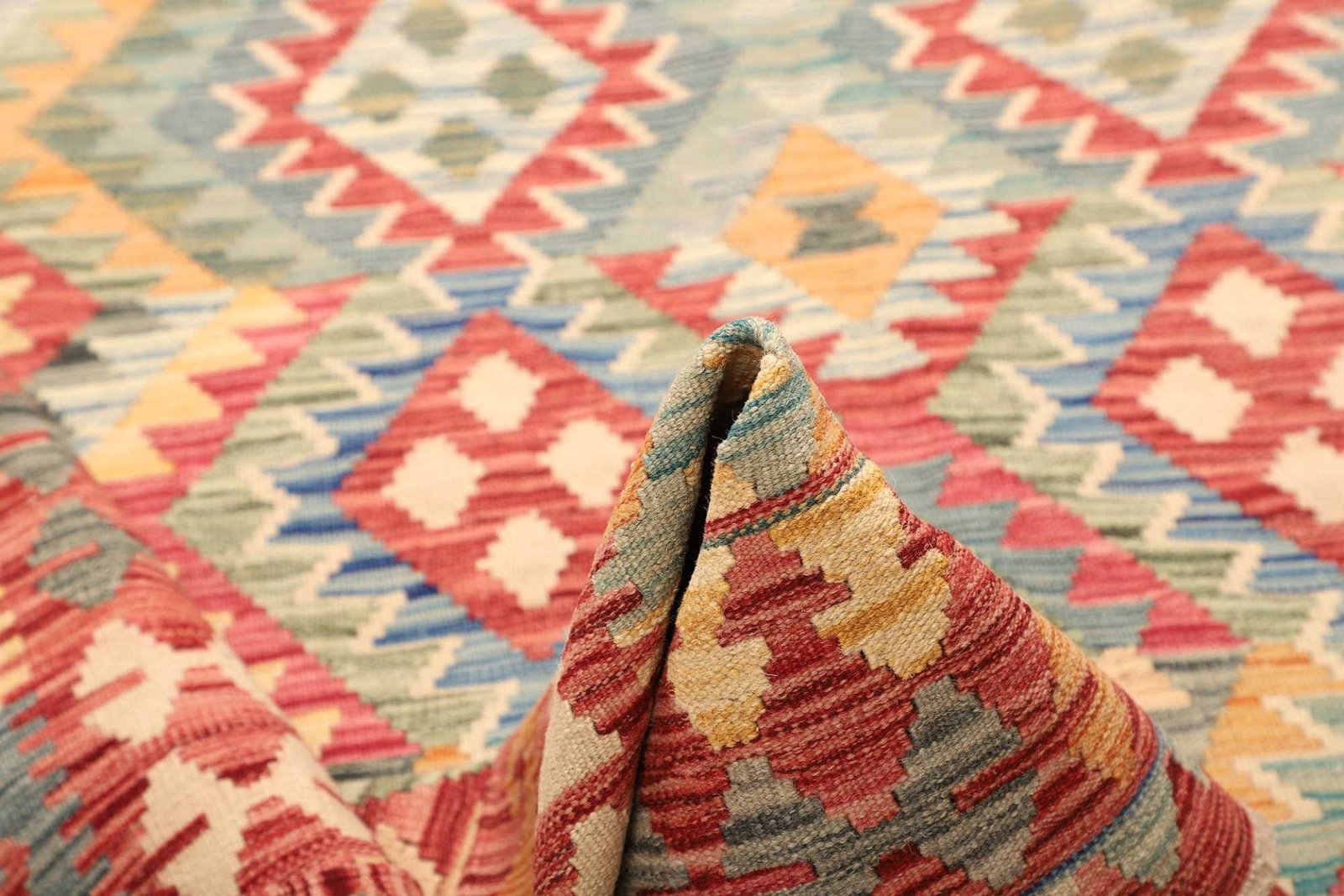 Ein bemerkenswerter Vorteil handgewebter Kelim Teppiche ist ihre Pflegeleichtigkeit und Vielseitigkeit. Sie sind nicht nur langlebig, sondern auch weniger anfällig für Abnutzung, was sie ideal für den täglichen Gebrauch macht. Zudem sind sie aufgrund ihrer flachen Struktur leichter zu reinigen als andere, dickere Teppiche.