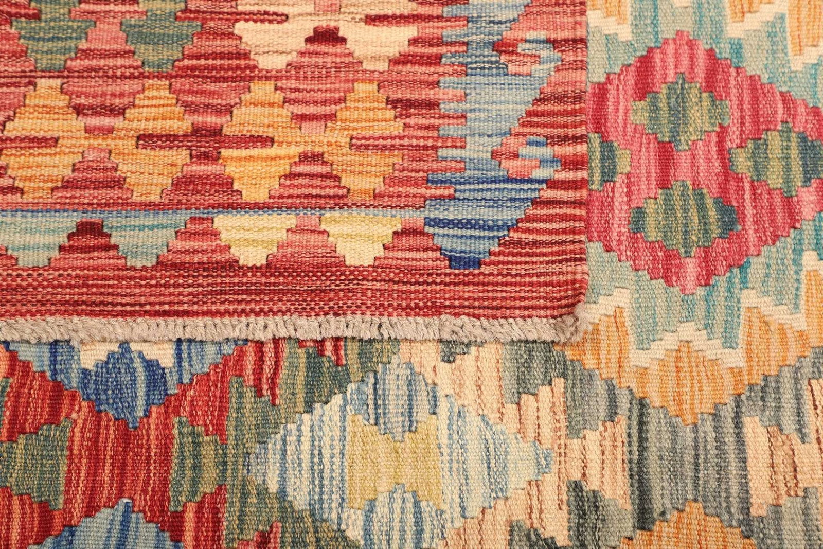 1446$ In den WarenkorbKelim 215 x 144 cm – Handgewebt mit identischem Muster auf Vorder- und Rückseite – Orientteppich