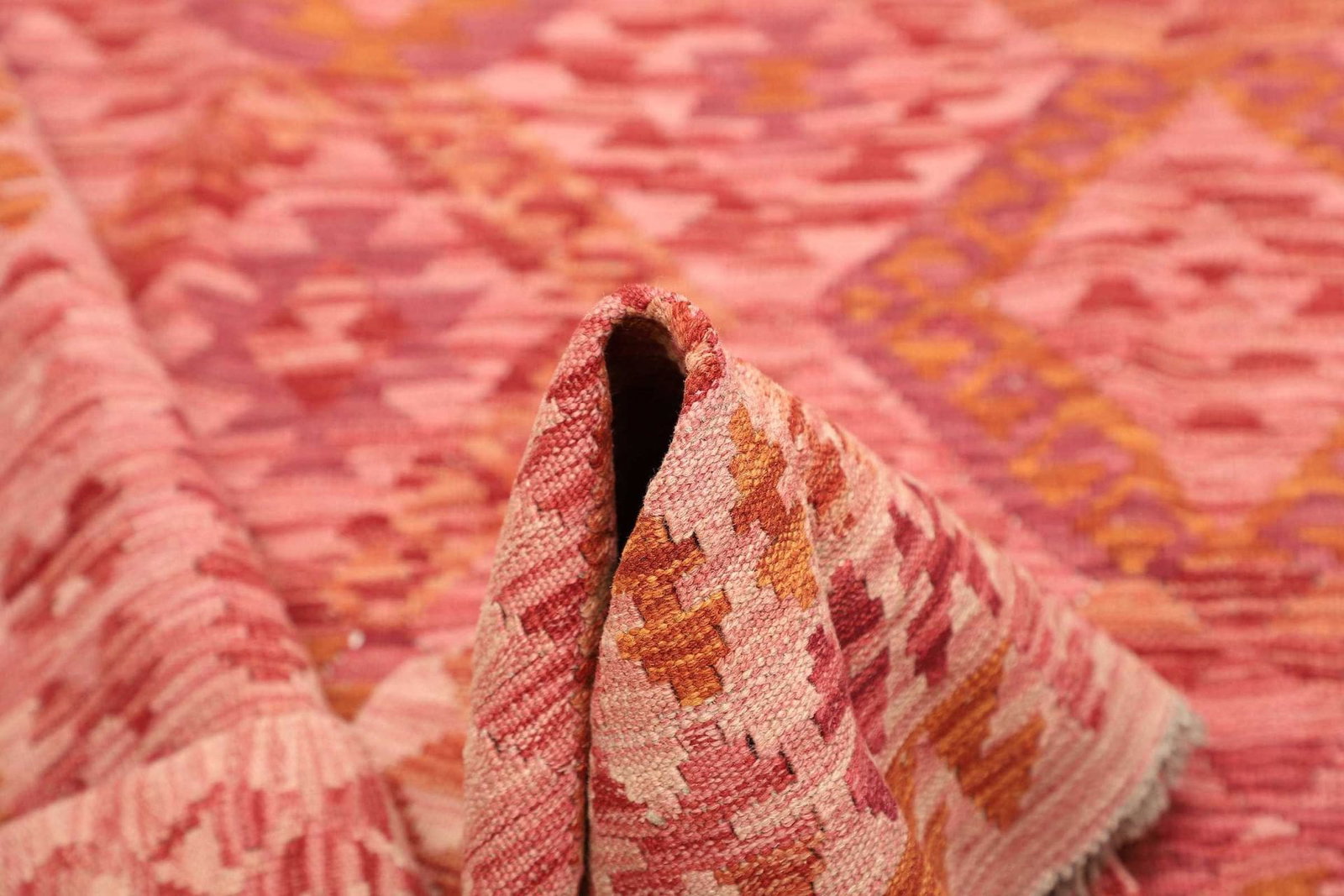 Der Kelim Teppich ist aus hochwertiger Wolle gefertigt, einem Material, das für seine Langlebigkeit und seinen Komfort bekannt ist. Die handgewebte Technik verleiht dem Teppich eine einzigartige Struktur und macht ihn besonders robust gegenüber täglichen Beanspruchungen. Durch die natürlichen Eigenschaften der Wolle ist der Teppich nicht nur kuschelig und angenehm zu laufen, sondern auch schmutzabweisend und einfach zu pflegen.