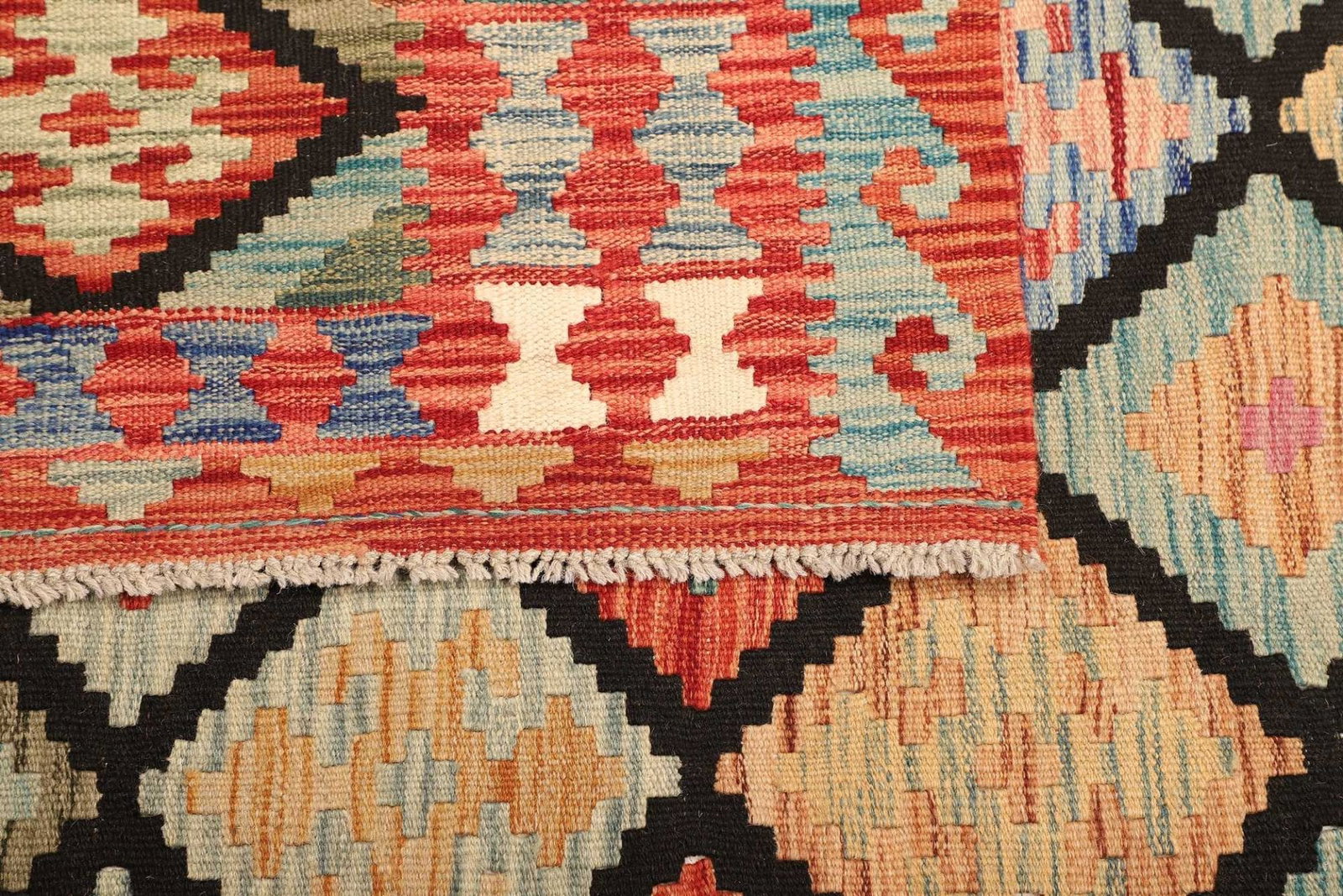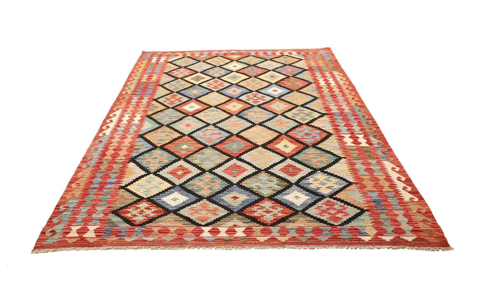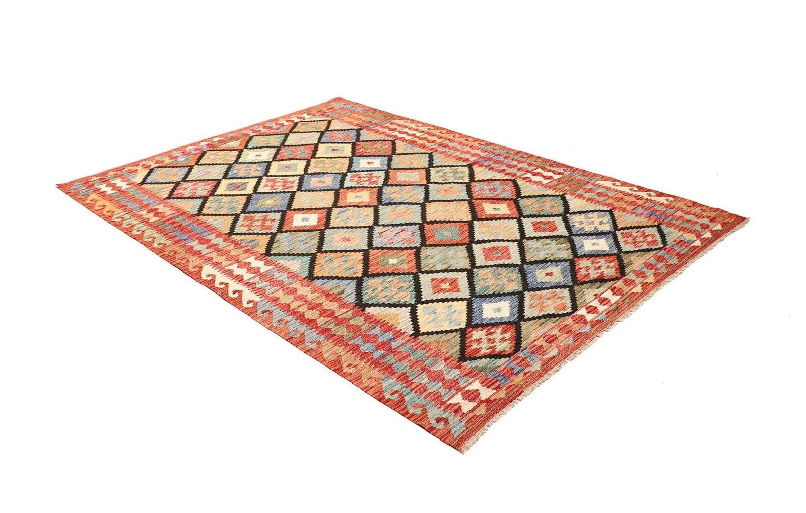 1446$ In den WarenkorbKelim 215 x 144 cm – Handgewebt mit identischem Muster auf Vorder- und Rückseite – Orientteppich
