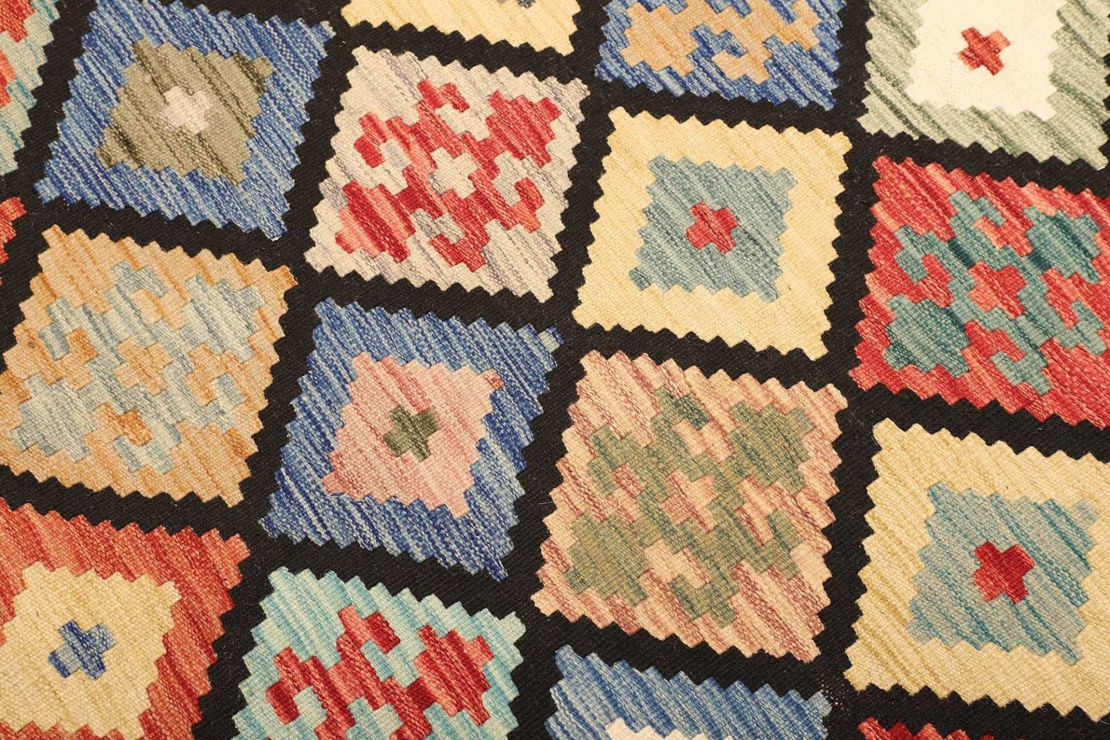 Kelim Teppich aus Schurwolle, handgewebt, rustikal