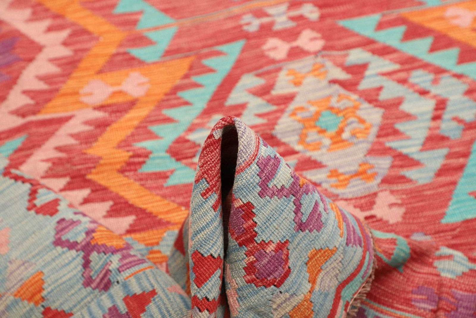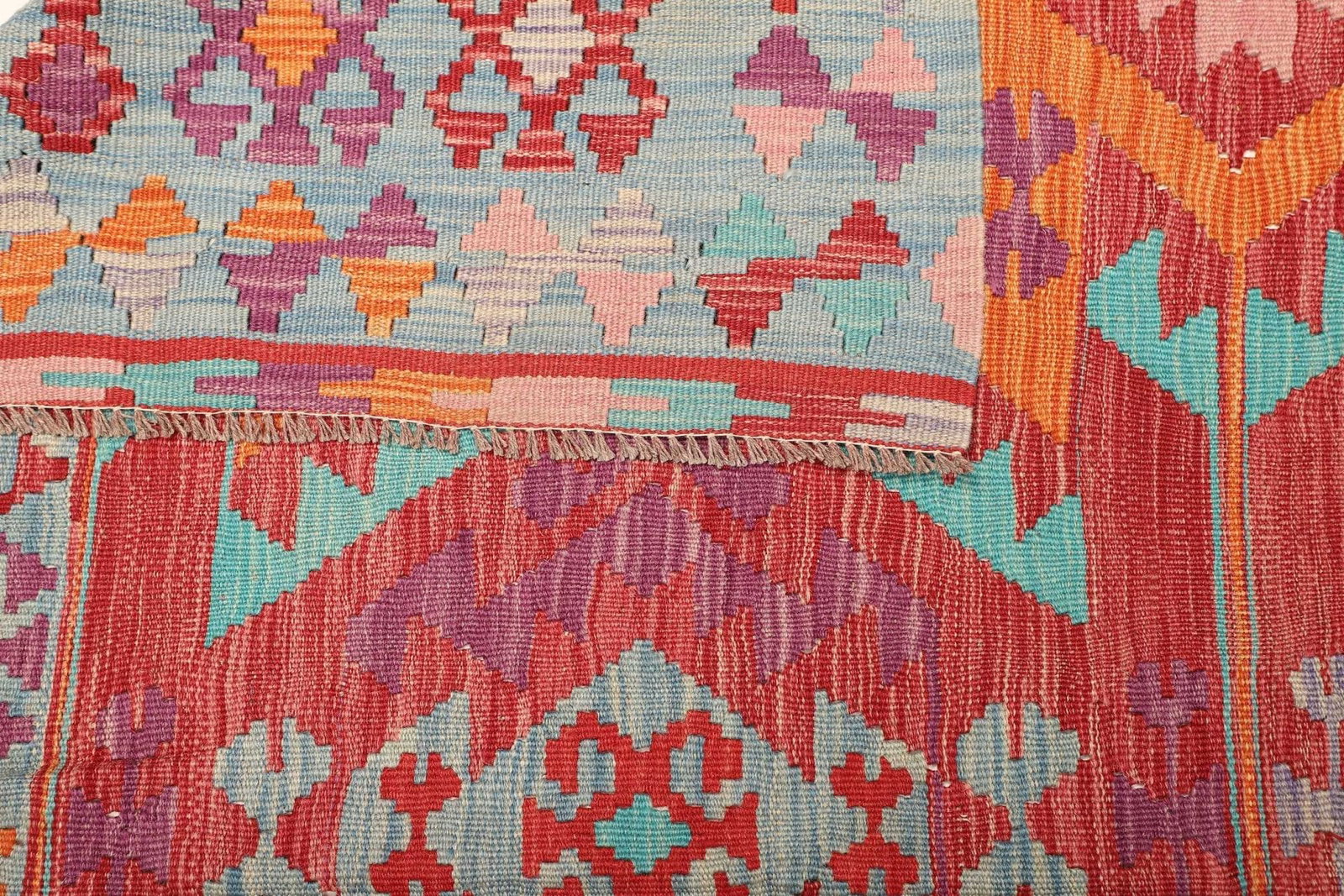 Kelim 216 x 128 cm – Handgewebt mit doppeltem Muster auf Vorder- und Rückseite – Traditioneller Wandschmuck – Handgeknüpft – Orientteppich