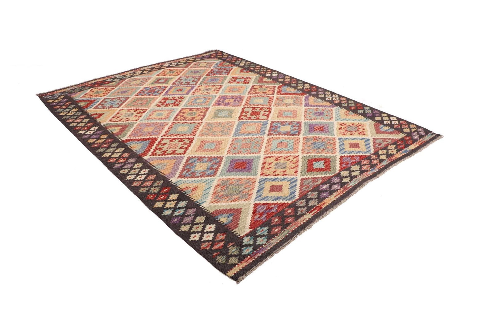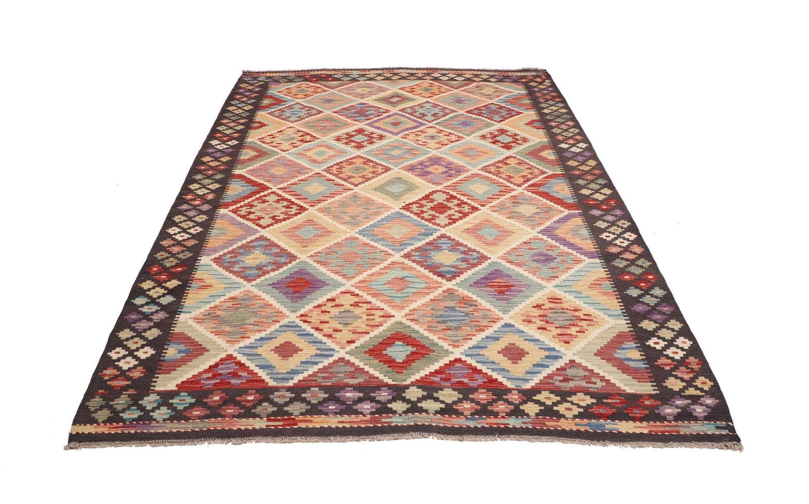 Kelim Teppich | Knotendichte: ca. 200.000 Knoten/m² | Material: 100% Schurwolle | Größe: 183 x 240 cm | Herkunft: Pakistan | Zustand: Handgewebte Qualität | Florhöhe: ca. 5 mm | Kette: 100% Baumwolle