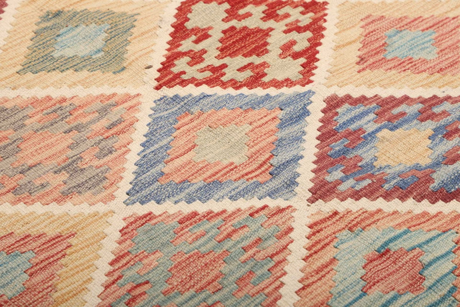 Kelim Teppich – handgewebt, rustikales Design, Wolle