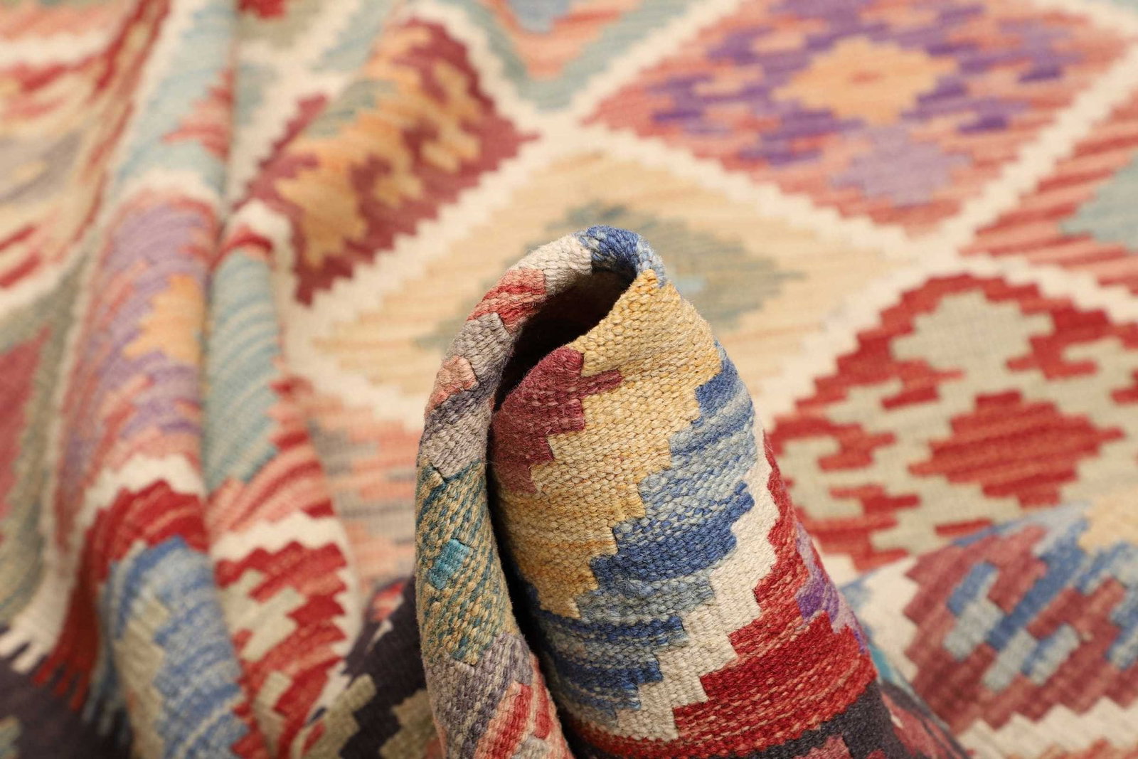 Ein weiterer bemerkenswerter Aspekt dieses Kelim Teppichs ist seine Vielseitigkeit. Er kann sowohl im Wohn- als auch im Schlafzimmer eingesetzt werden und passt hervorragend zu verschiedenen Einrichtungsstilen – von modern bis hin zu rustikal oder traditionell. Darüber hinaus sorgt die Verwendung von Wollmaterialien für eine weiche Textur, die Barfußlaufen zu einem besonderen Erlebnis macht.