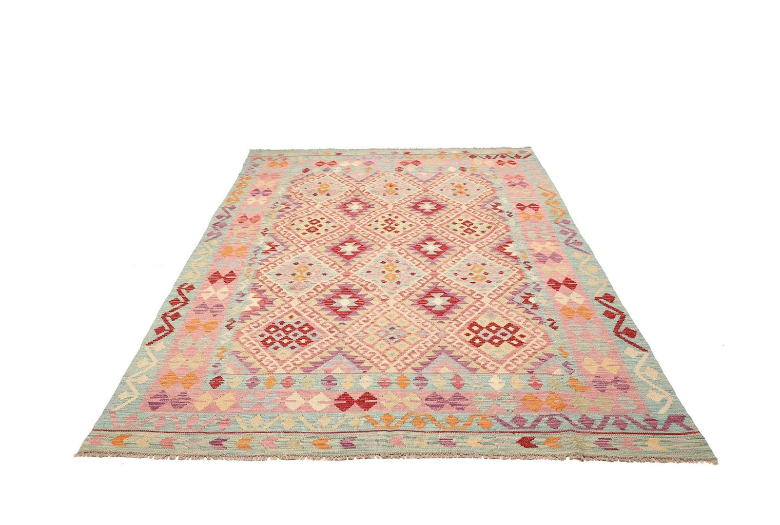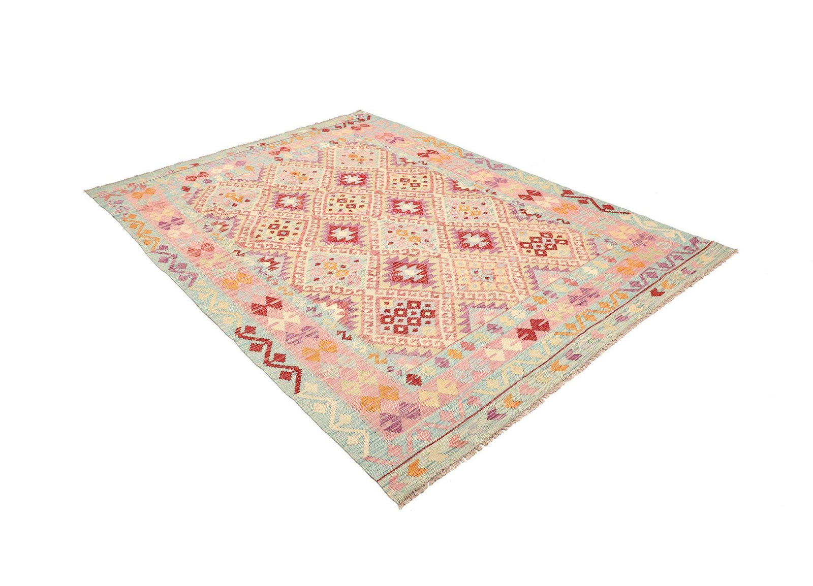 Kelim Teppich | Knotendichte: ca. 200.000 Knoten/m² | Material: 100% Schurwolle (Flor), 100% Baumwolle (Kette) | Größe: 183 x 241 cm | Handgewebte Qualität | Herkunft: Pakistan | Höhe: ca. 5 mm | Ideal für moderne und rustikale Einrichtungen